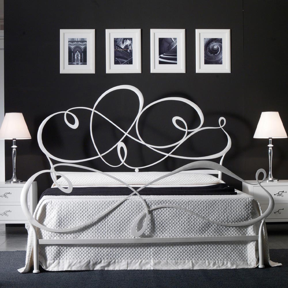 pulverlackering eller hantverksmässig lövmålning. Denna produkt med enkla och slingrande ytbehandlingar är perfekt för att möta alla designbehov hos dem som vill inreda sin sovplats med smak och stil. Maximal kvalitet och motstånd garanteras tack vare valet av material av utmärkt kvalitet.