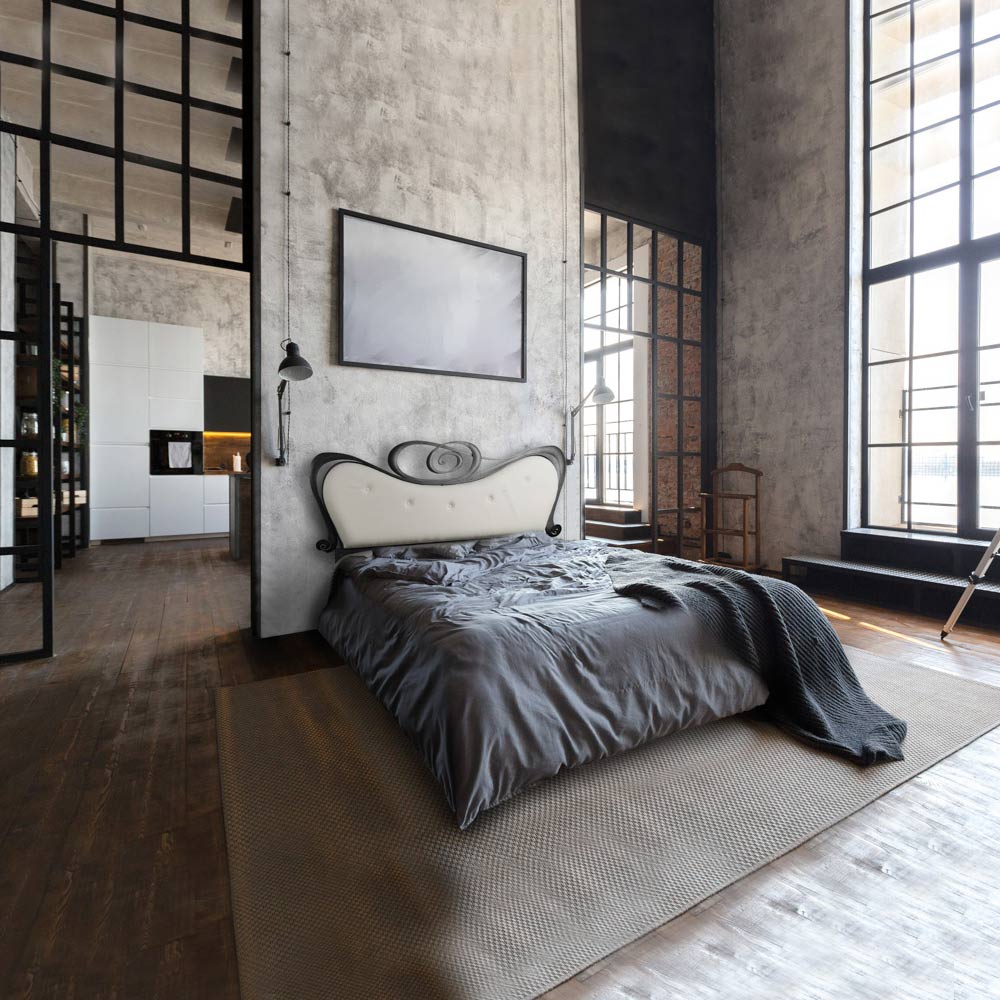 Dubbelsäng med sänggavel i järn Tillverkad i Italien