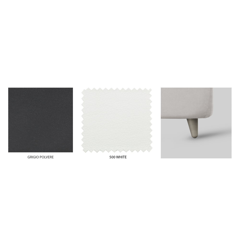 Tillgängliga ytbehandlingar:- H 11 fot modell: pudergrå sänggavel, vit sängram i ekoläder och duggrå polypropenfötter