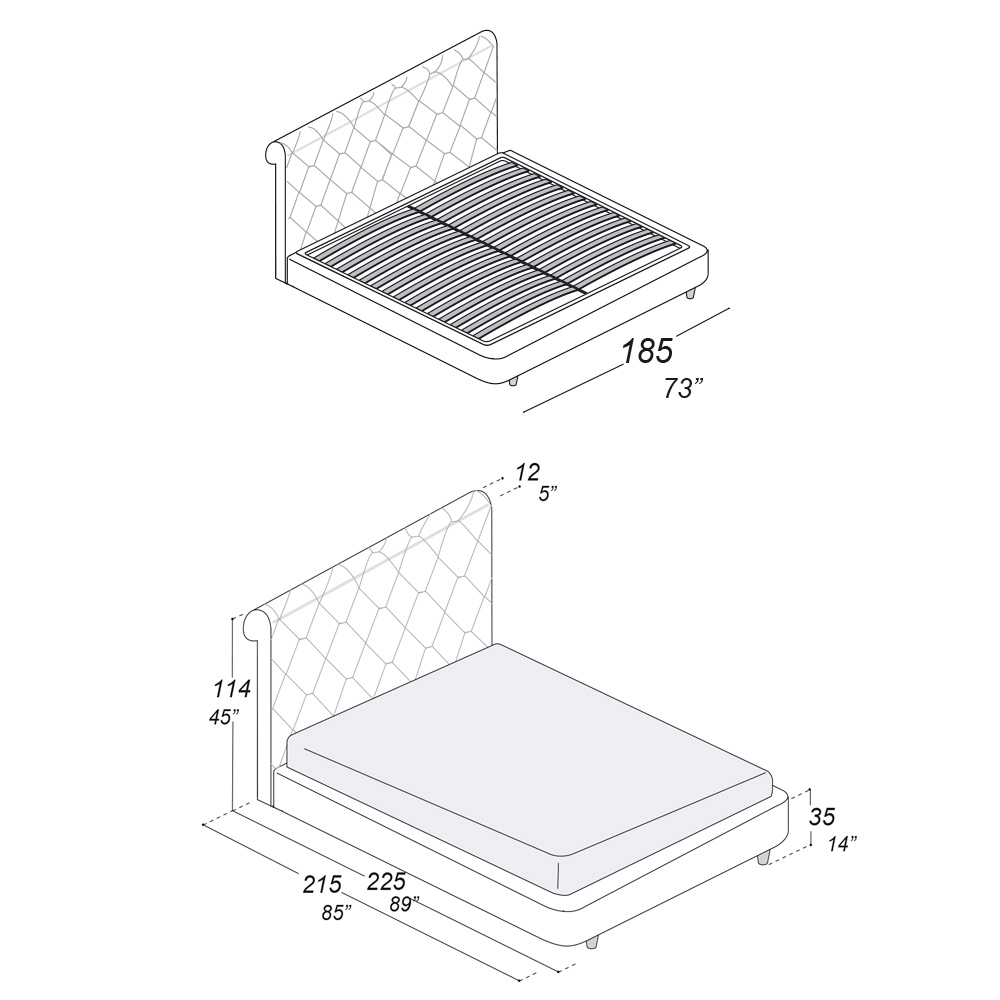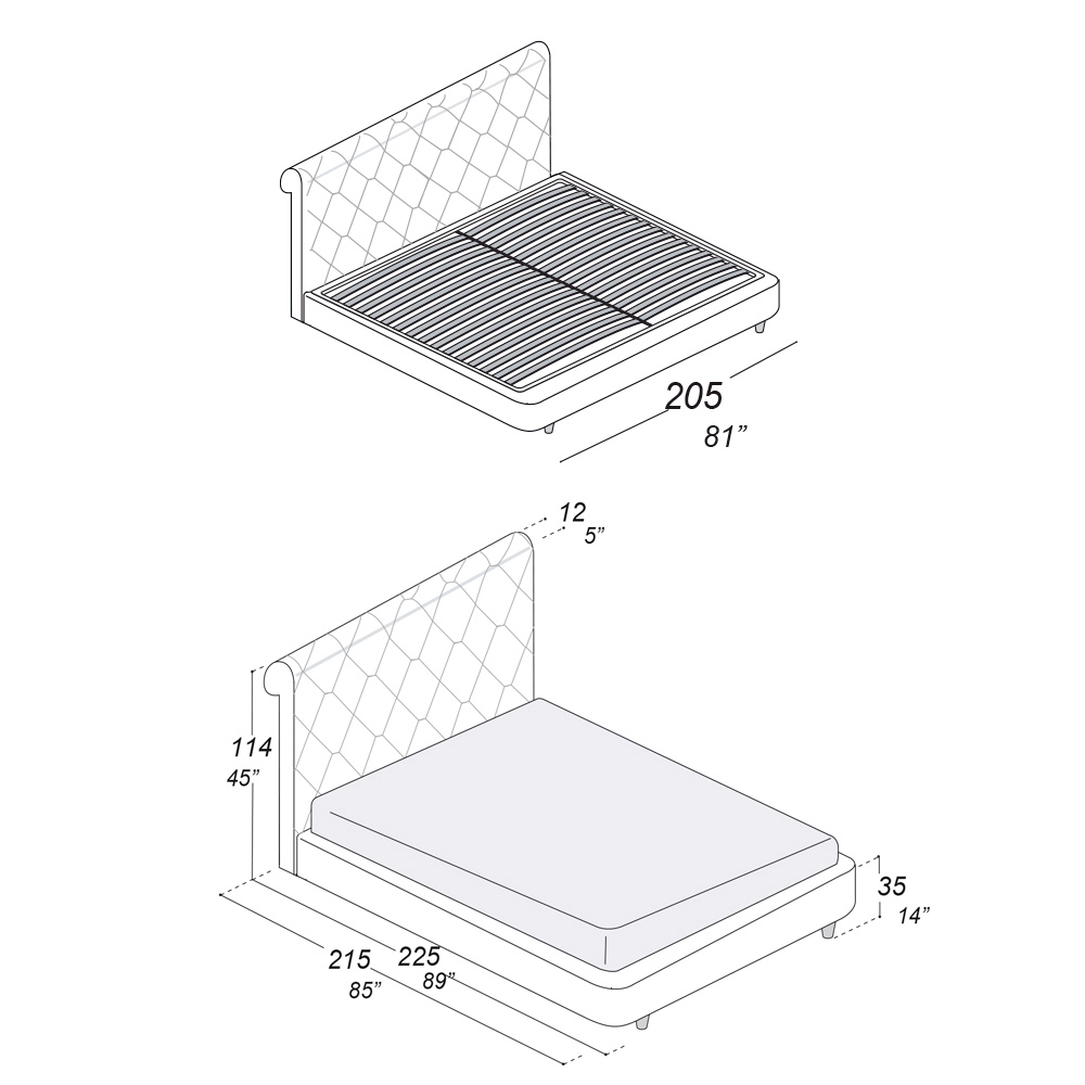 - längd: 205 cm x djup: 225 cm x höjd: 114 cm - lämplig för en 180x200 cm madrass