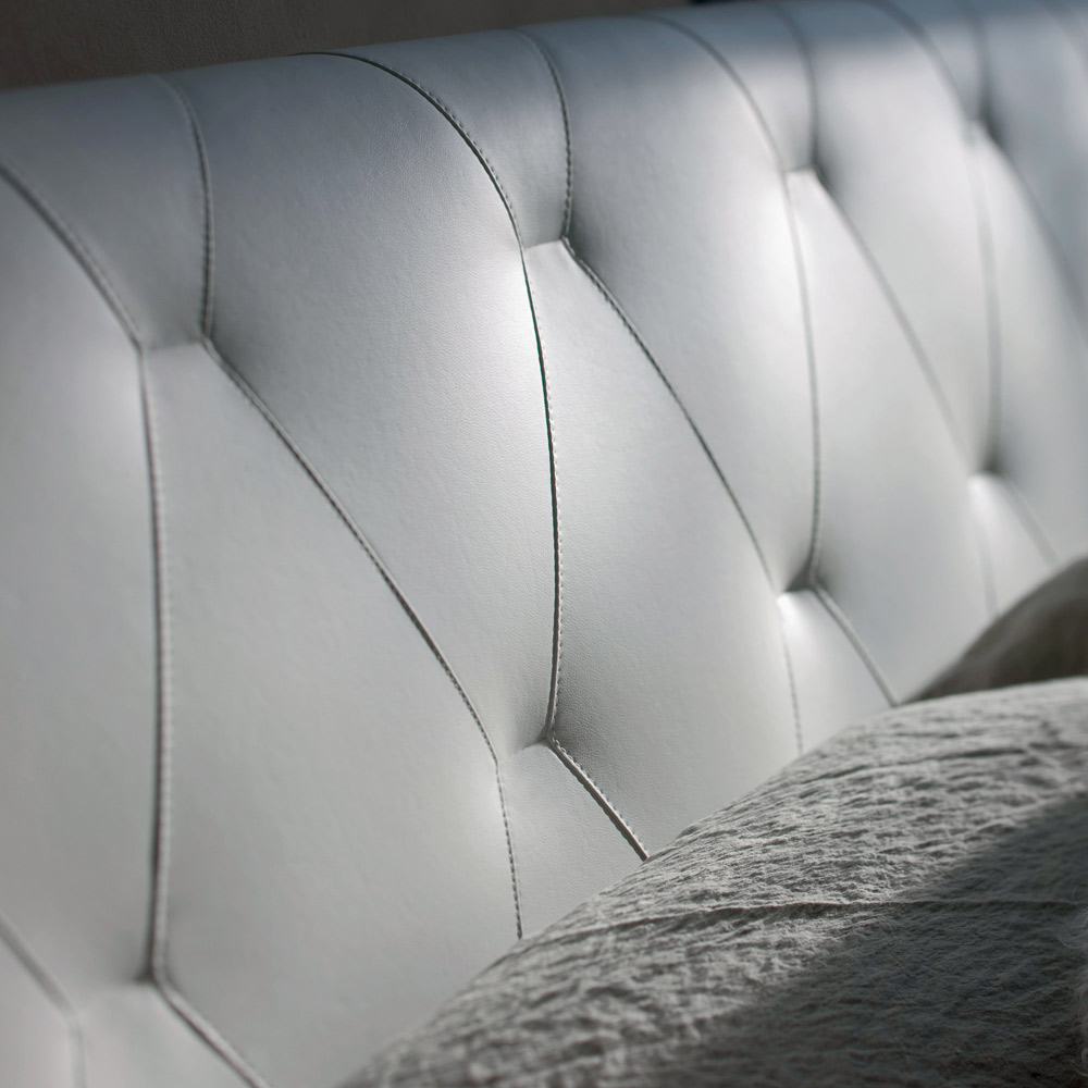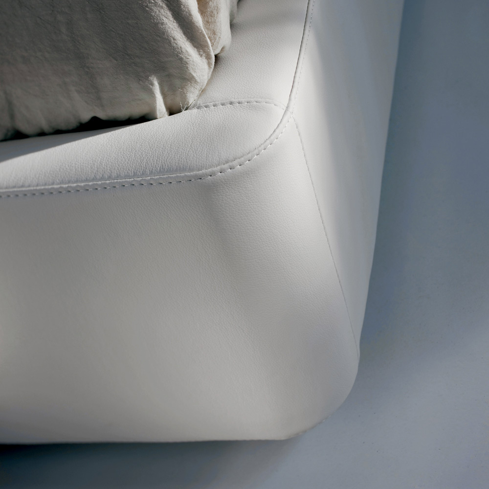 Dubbelsäng i vitt ekoläder Tillverkad i Italien