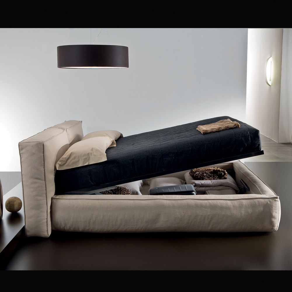 Dubbelsäng i tyg med valfri behållare Tillverkad i Italien