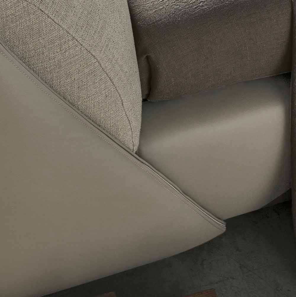 kontrastspelet som ges av kombinationen av två olika tyger berikar och understryker estetiken, vilket gör det till rummets sanna huvudperson och erbjuder en behaglig känsla av pålitlighet och välkomst.