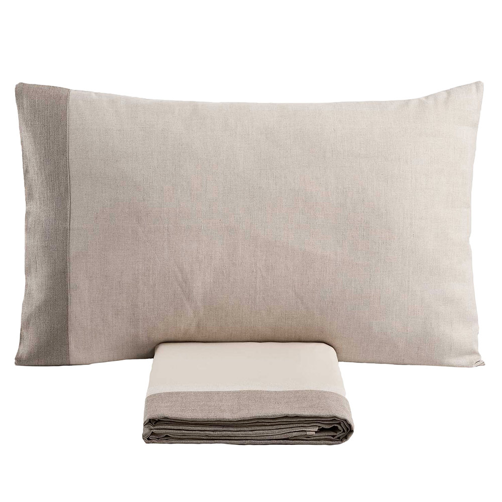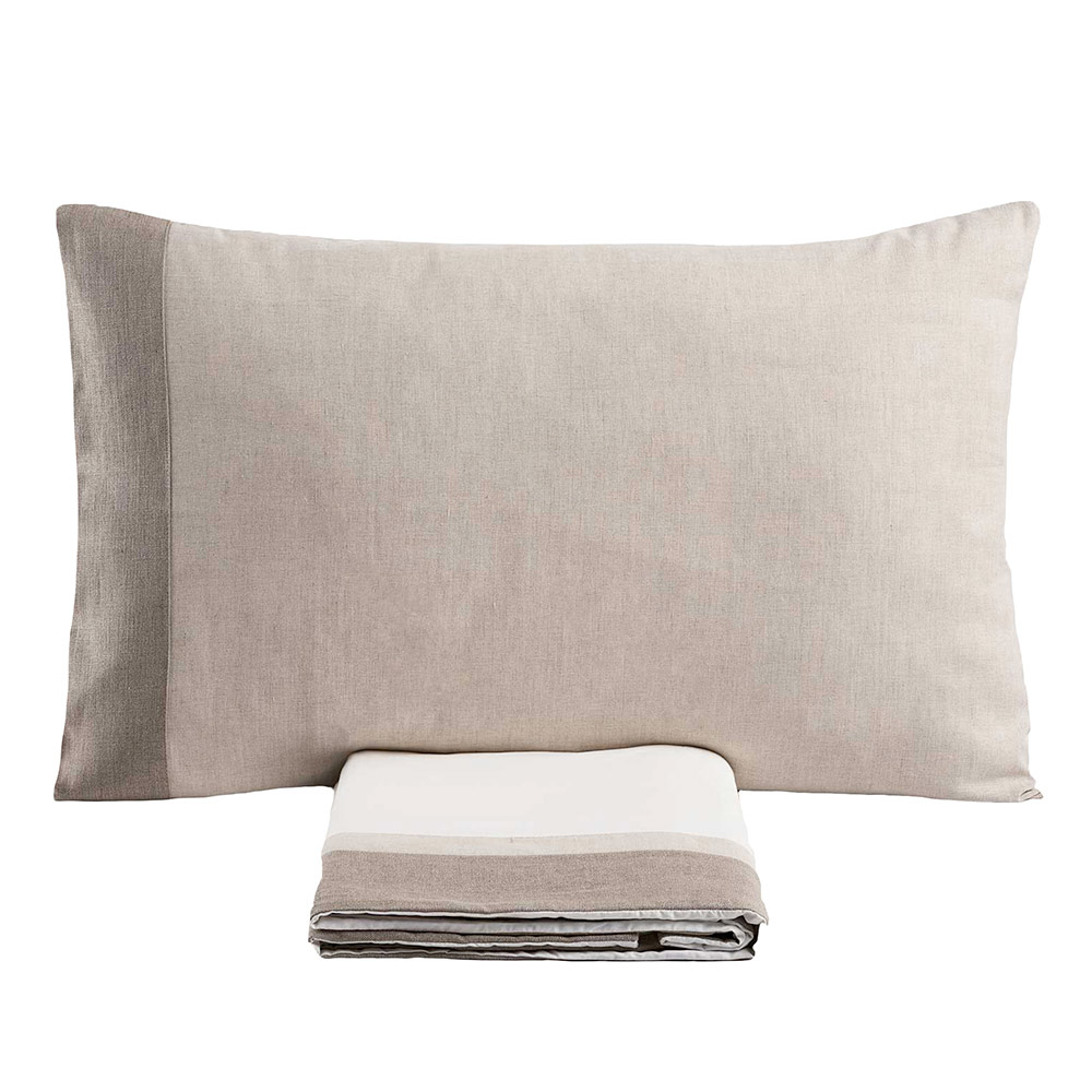 Upptäck dubbelsängsetet gjort med en fin blandning av 90 % bomull och 10 % linne , en idealisk kombination för dem som söker maximal komfort kombinerat med oklanderlig design. Denna unika sammansättning kombinerar bomullens mjukhet och andningsförmåga med linnets motstånd och naturliga fräschör, vilket ger en överlägsen sömnupplevelse under varje säsong.