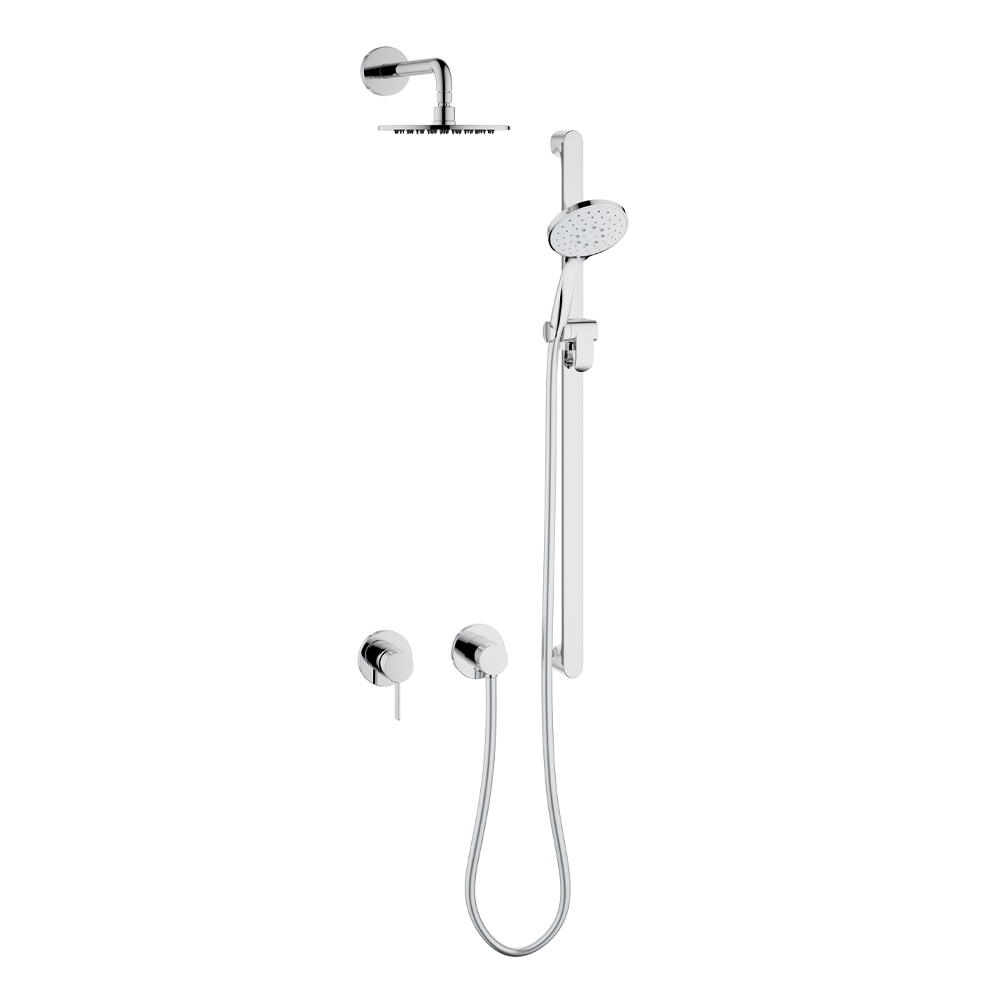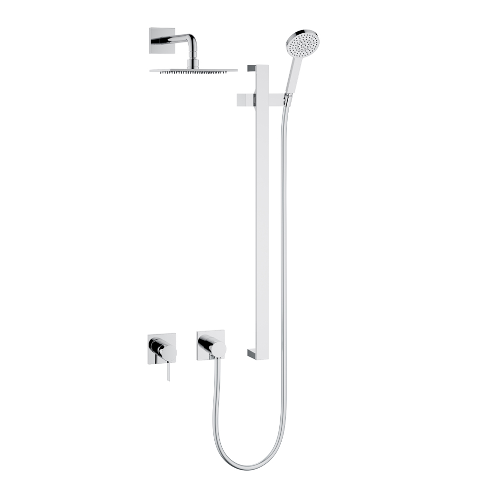 Duschblandare med minimal engreppsblandare och duschmunstycke.