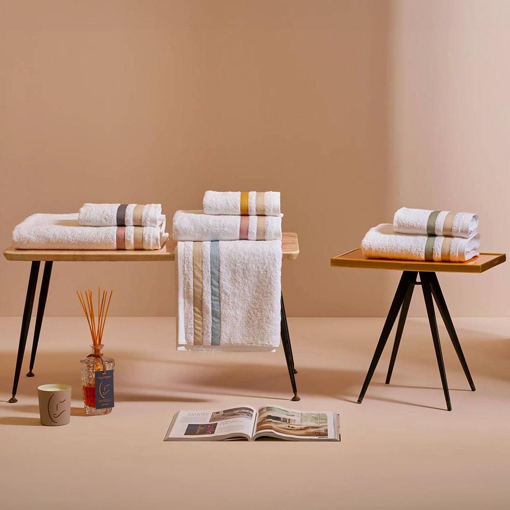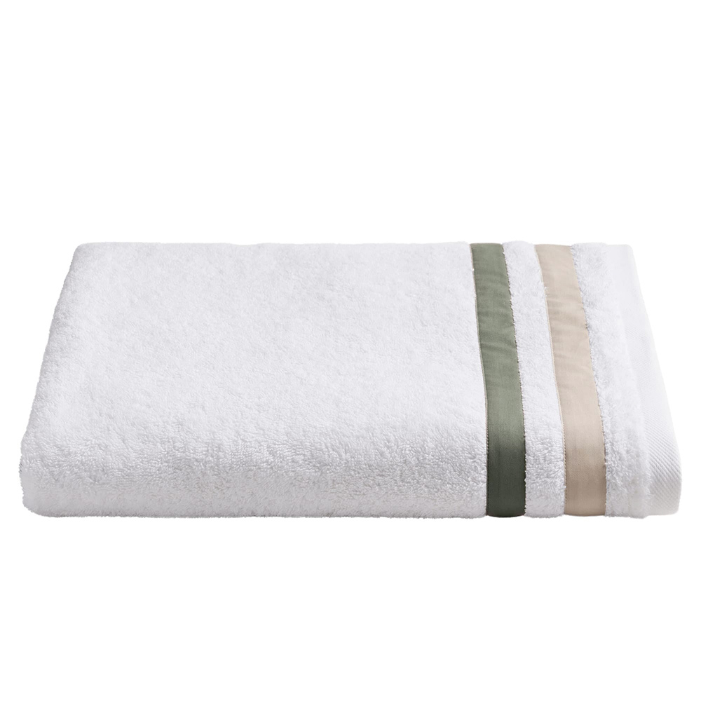 Duschhandduk i ren bomullssvamp 530 gr/m2 med dubbel volang i ren bomullspercale 200 tc.