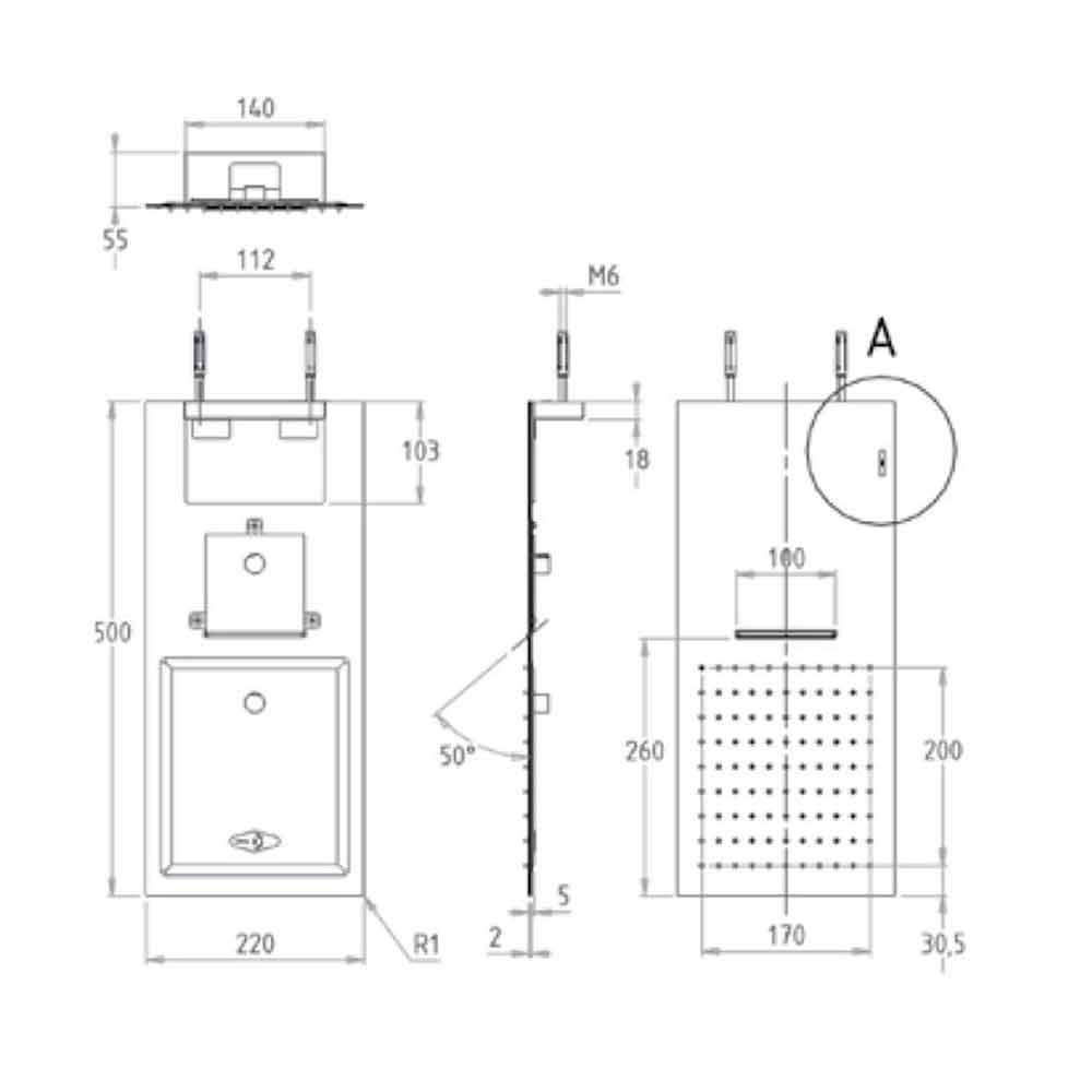 - väggmonterat duschhuvud i ultratunt anti- kalkstensstål ;