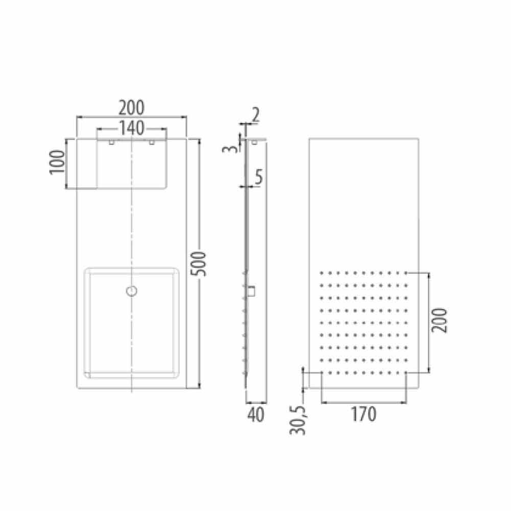 Ultratunt rektangulärt duschhuvud i stål med dubbelstråle Tillverkad i Italien.