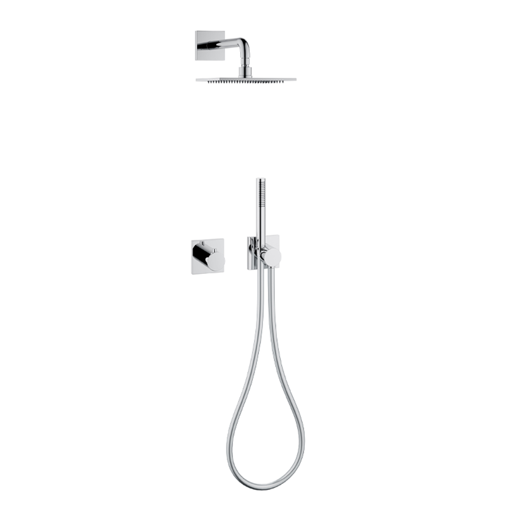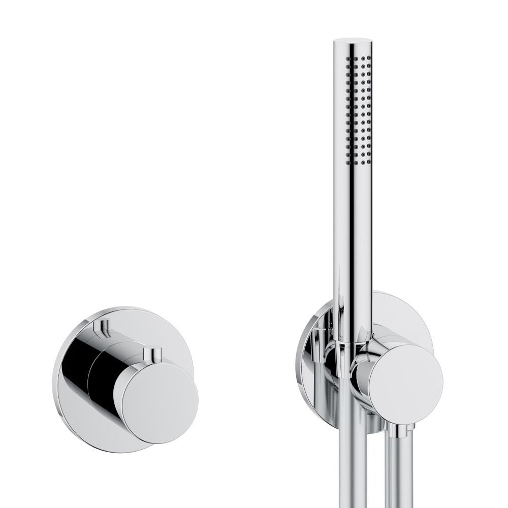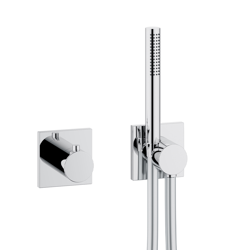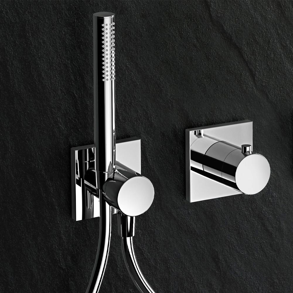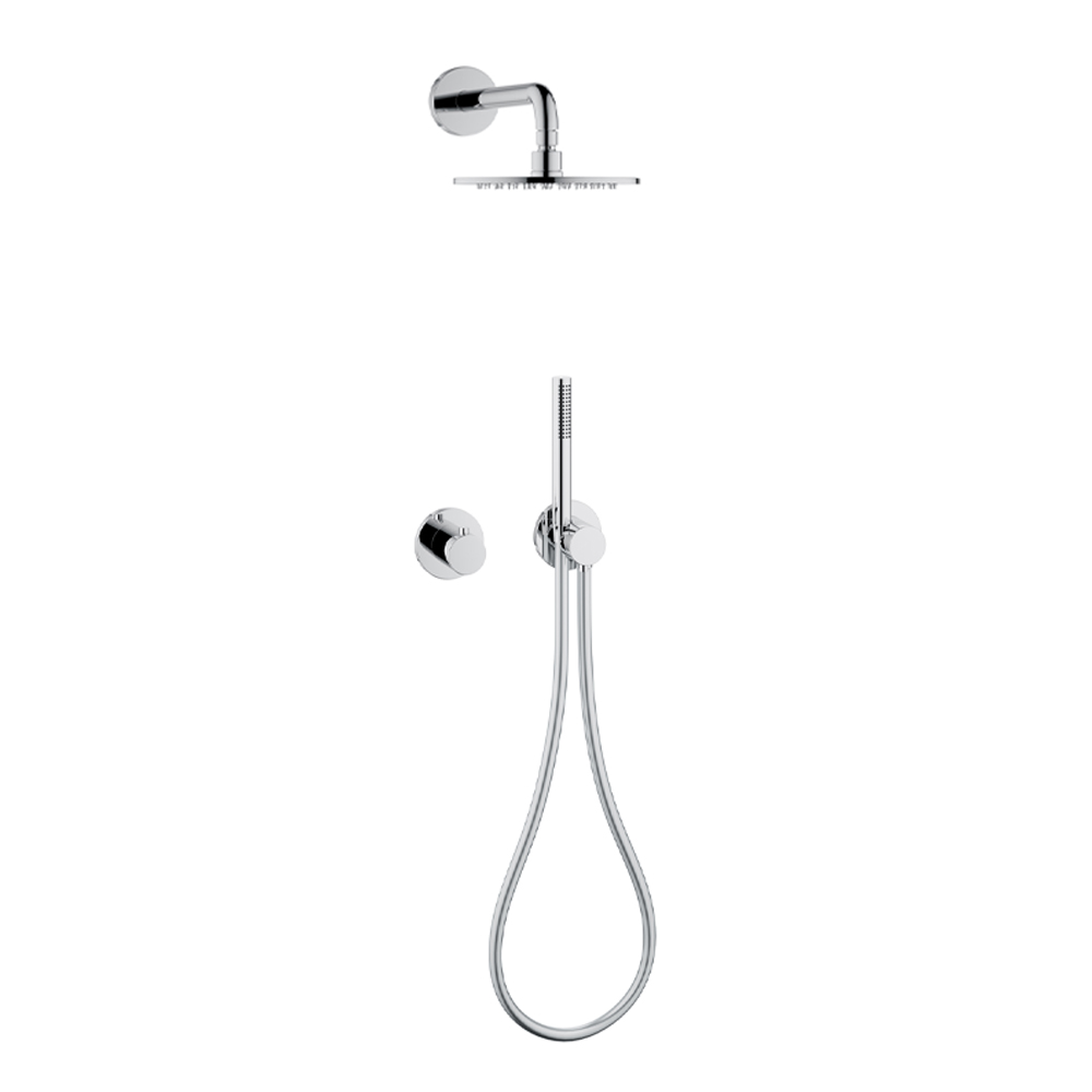 Duschset med minimal engreppsblandare och duschmunstycke.