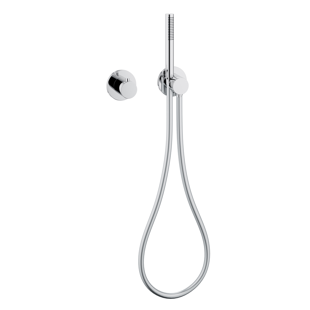 - Dold tvåvägs stoppventil och omkastare med flexibel slanganslutning och väggduschstöd