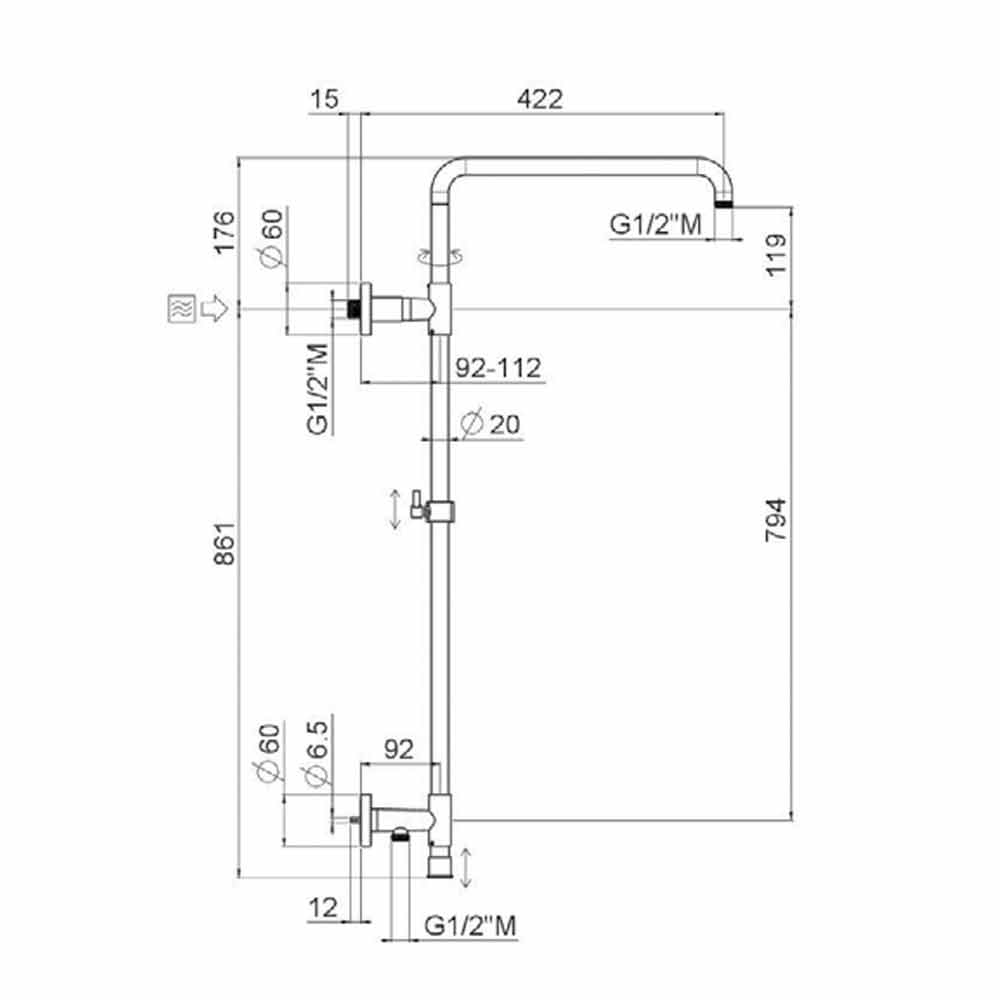 - höjd på duschpelaren 1005 mm;