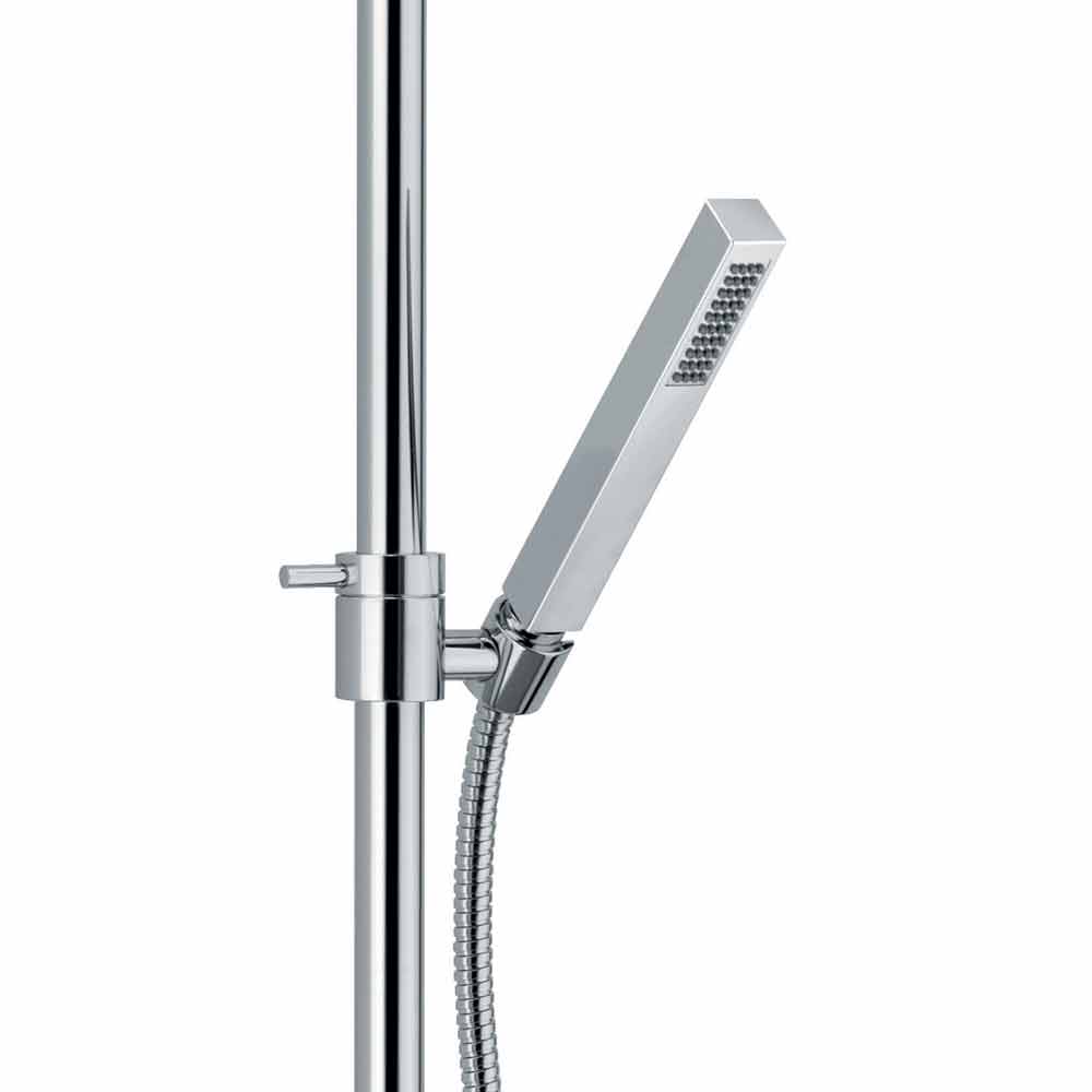 funktionalitet , vilket ger en duschpelare så vacker och förfinad att se eftersom den är praktisk och enkel att använda. Med glidstödet kan du justera höjden på handduschen, medan den 150 cm långa slangen gör att du kan använda den på ett helt hanterbart och bekvämt sätt.
