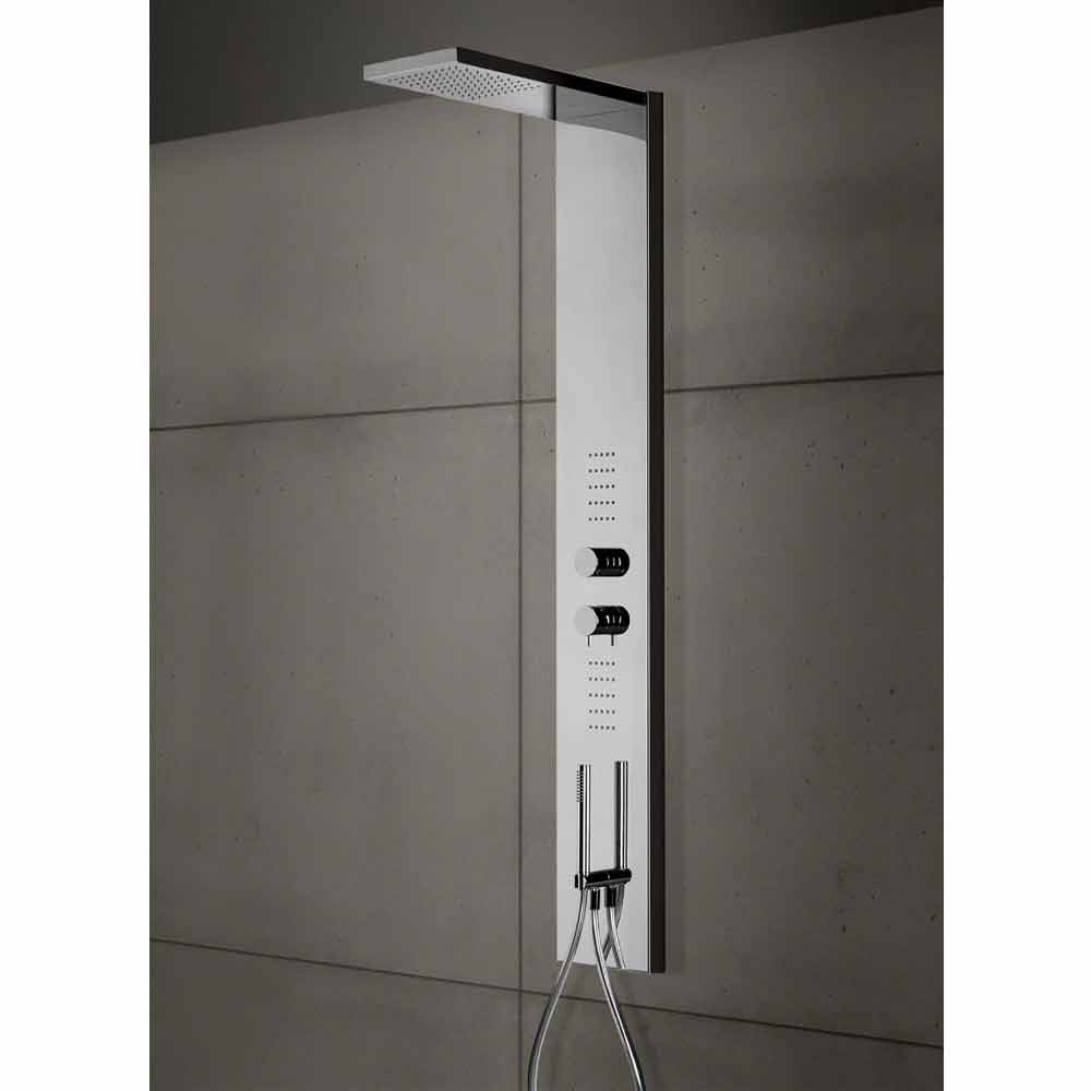 Duschpelare i stålpanel med tre uttag med regnduschhuvud, högkvalitativ produkt Tillverkad i Italien.