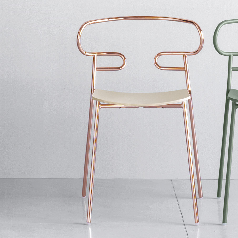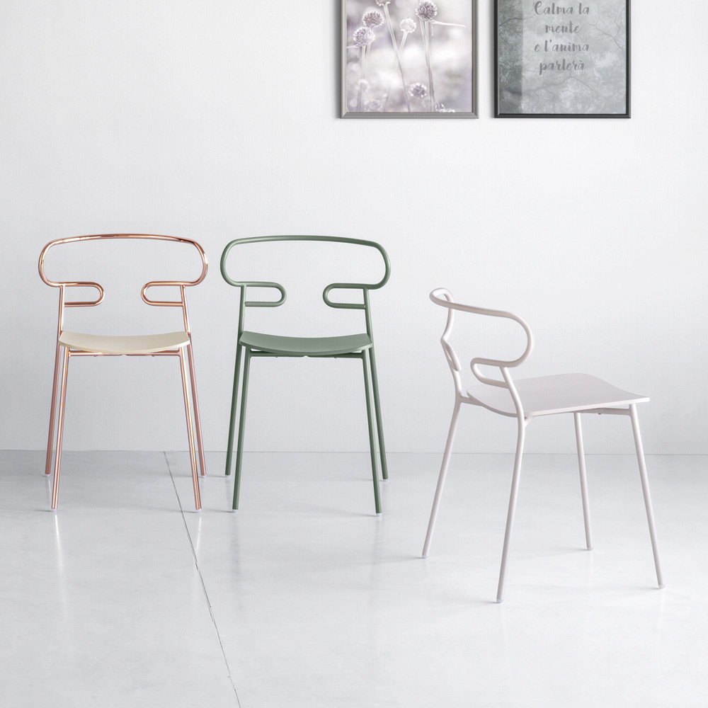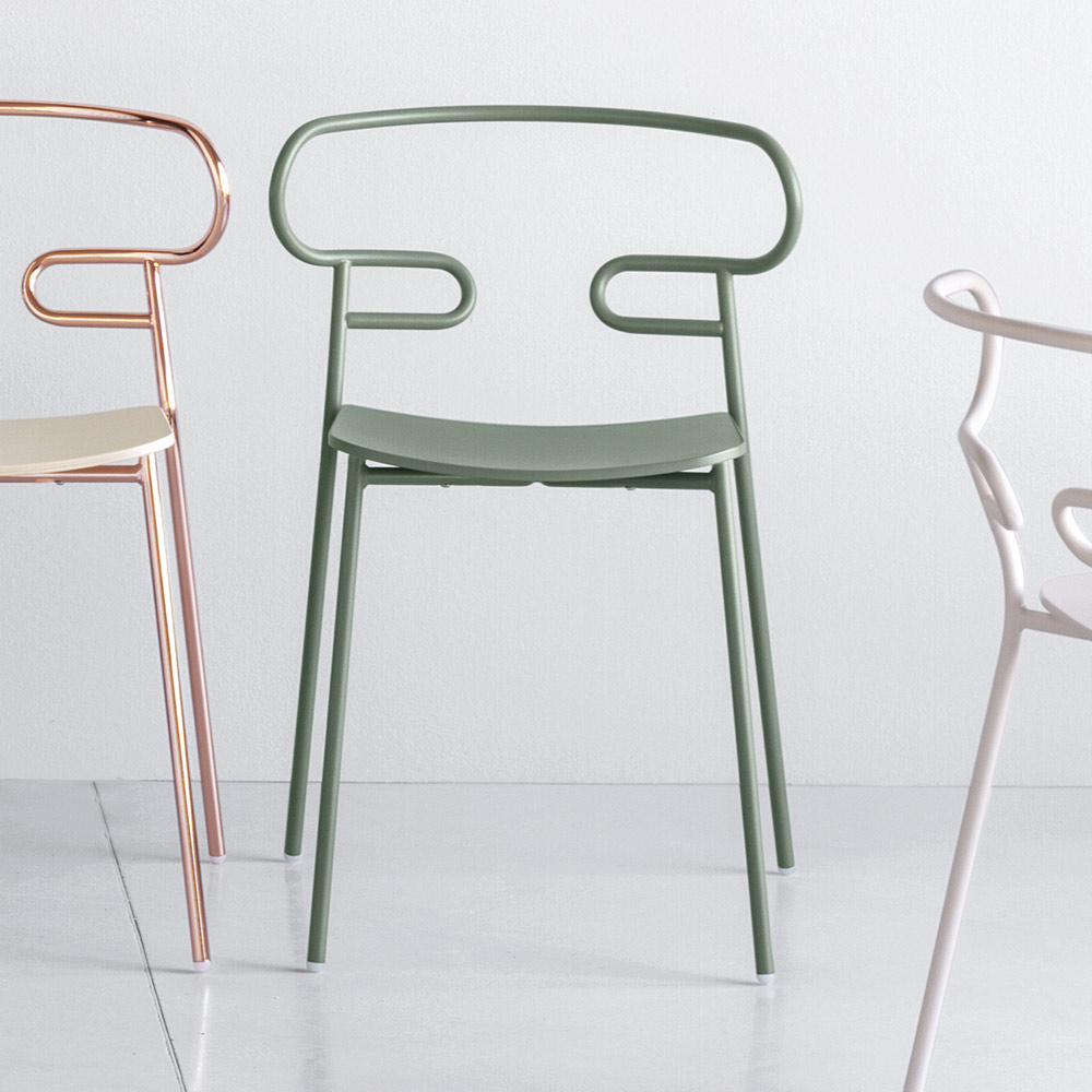 Stol för matsal eller kök i målad metall med sittplats i ask i trä . Från den perfekta kombinationen av elegans och enkelhet kommer detta designobjekt med extremt väsentliga linjer som ger en känsla av rörelse och sticker ut tack vare ryggstödets särdrag tack vare krökningen i ett enda metallrör. Denna funktion ökar dess originalitet och skapar därmed ett säte så bekvämt som det är estetiskt intressant och unikt. Dessutom, tack vare möjligheten att staplas, har dessa stolar en ännu högre funktionalitet , vilket gör det möjligt att optimera och organisera utrymmen på bästa möjliga sätt.
