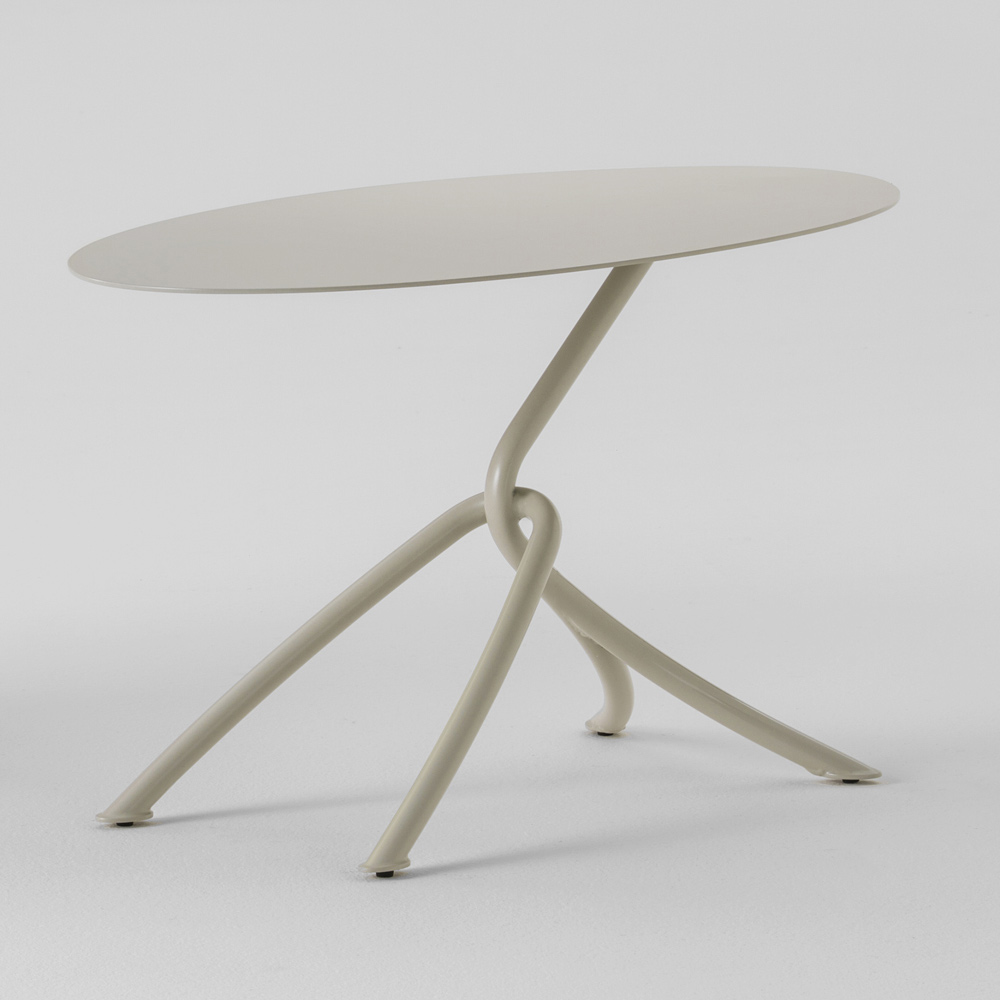 Modernt soffbord utomhus i Italien med struktur och topp i målad metall . En innovativ och särskilt original design kännetecknar detta tillbehör för inredning av utomhusutrymmen som trädgårdar, verandor eller terrasser där en kreativ och avantgardistisk stil ska bibehållas. Det som får henne att se unik ut är den ovanliga formen på basen som skapar en känsla av rörelse och en underbar harmoni mellan linjerna tillsammans med den ovala toppen som ökar dess unika och berikar estetiken med en ny touch.