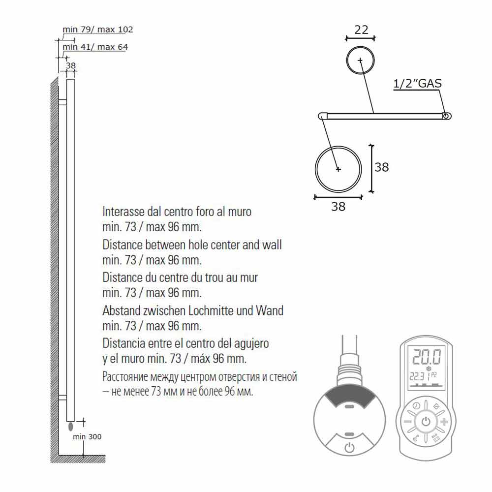 Termostatens mått på 80 mm måste läggas till höjden. Enfas 230 volt strömförsörjning.
