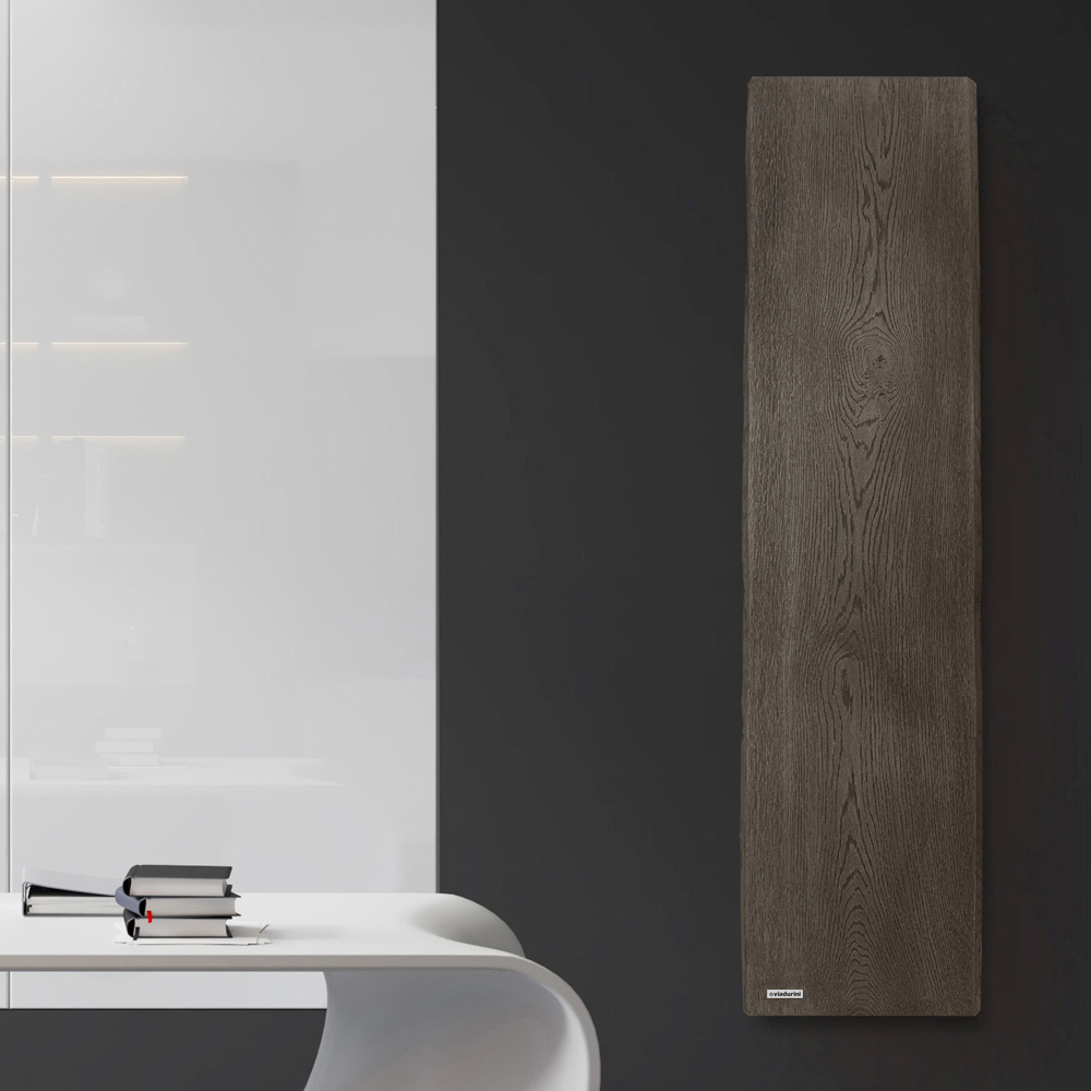 naturliga träfinisher som erbjuder ett val mellan olika ådringar inspirerade av naturen samt en enfärgad färg tillgänglig i ett brett utbud av färgkombinationer. Radiatorn har en