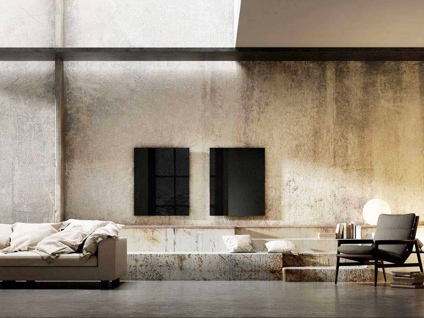 strålningspaneler i glas till elektrisk och infraröd strålningseffekt. Det är den idealiska lösningen för dem som vill ha en elegant och effektivt värmesystem. E 'består av två glasskivor laminerade samman, varav en är utrustad med en yta som kan stimuleras elektriskt. Genom applicering av elektrisk spänning, omvandlar glasytan insättning energin till värme som avges i form av infraröda strålar till långa vågen. Vägginfästningssystem är integrerad i den bakre delen av panelen och är helt osynlig från framsidan.