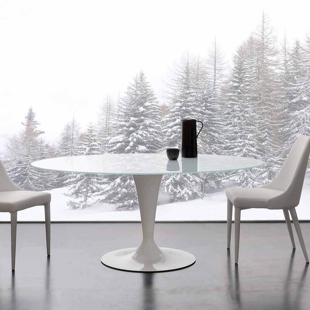 Elliptisk Fast bord i extravitt härdat glas och stål Aurora
