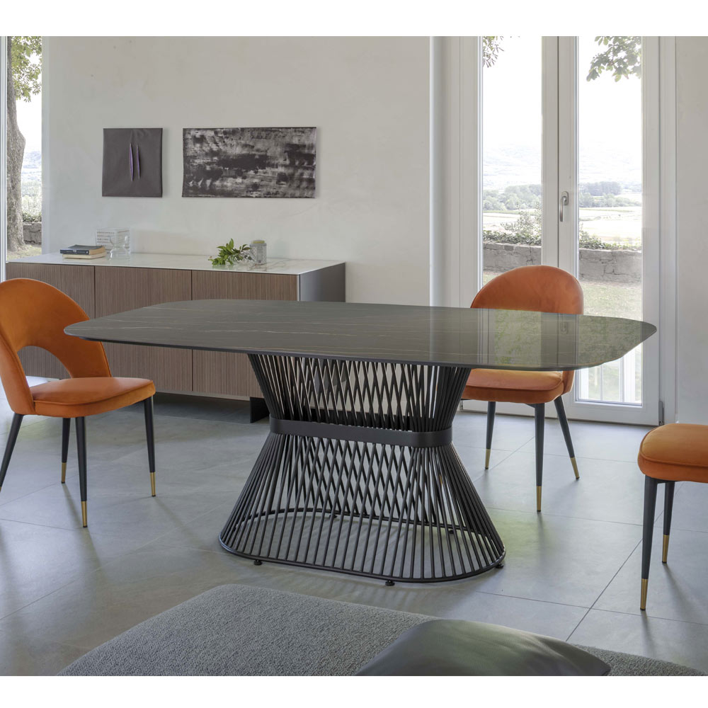 svartlackerat stål. Denna artikel med modern design är perfekt för inkludering i vardagsrum, kök och vardagsrum med en elegant och modern stil. Möjligheten att förlängas gör att den anpassar sig till alla behov och användningstillfällen, för att bjuda in vänner och släktingar och skapa unika och oförglömliga stunder av gemytlighet.