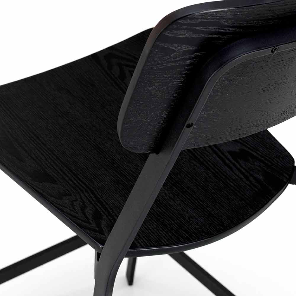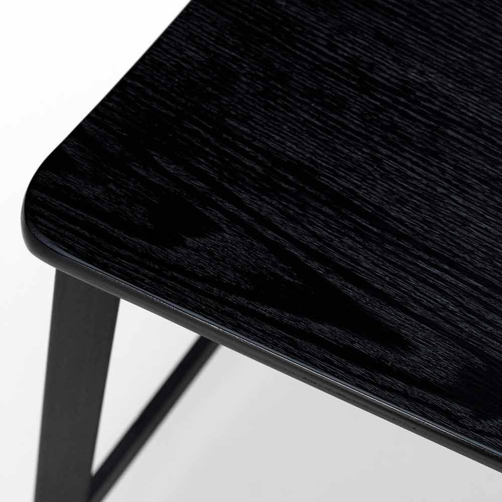 Tillverkad med en svartlackerad metallkonstruktion och med en svartlackerad träkropp och säte.