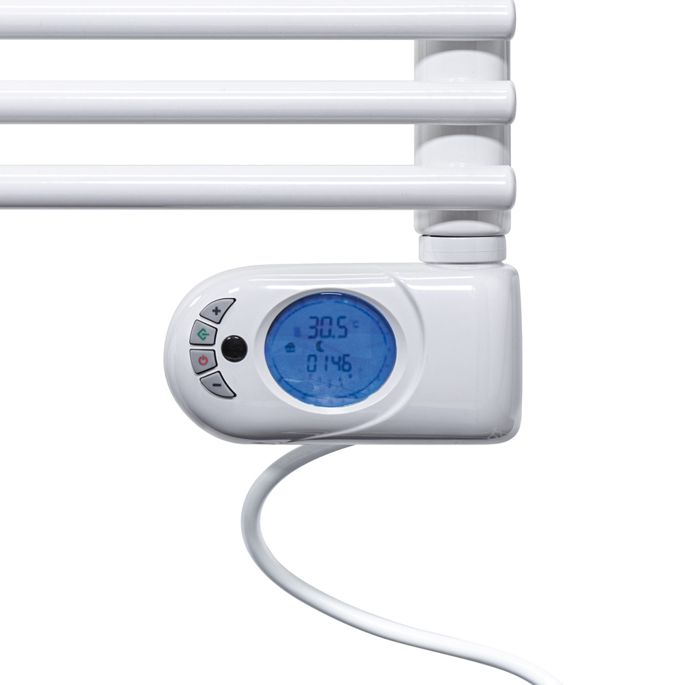 Digital LCD-kronotermostat med vit finish klass 1, skyddsindex IP64, 230V