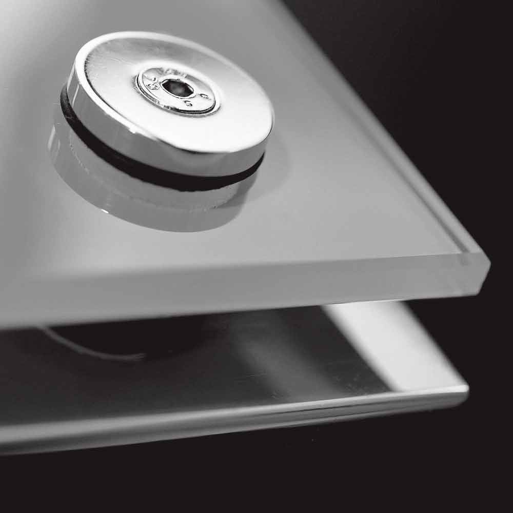 - Blad i flexibel metallduk kantad med polerad rostfritt stålprofil