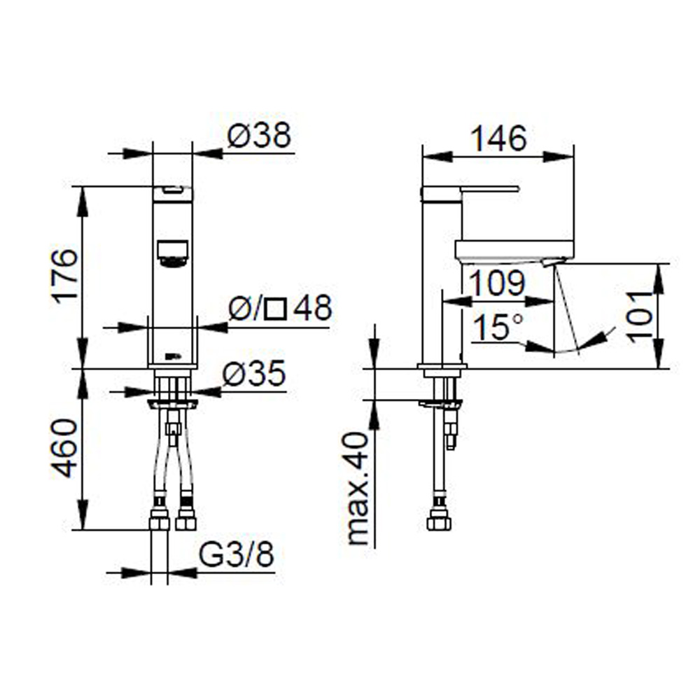 Engrepps tvättställsblandare i kromad mässing, 2 storlekar.