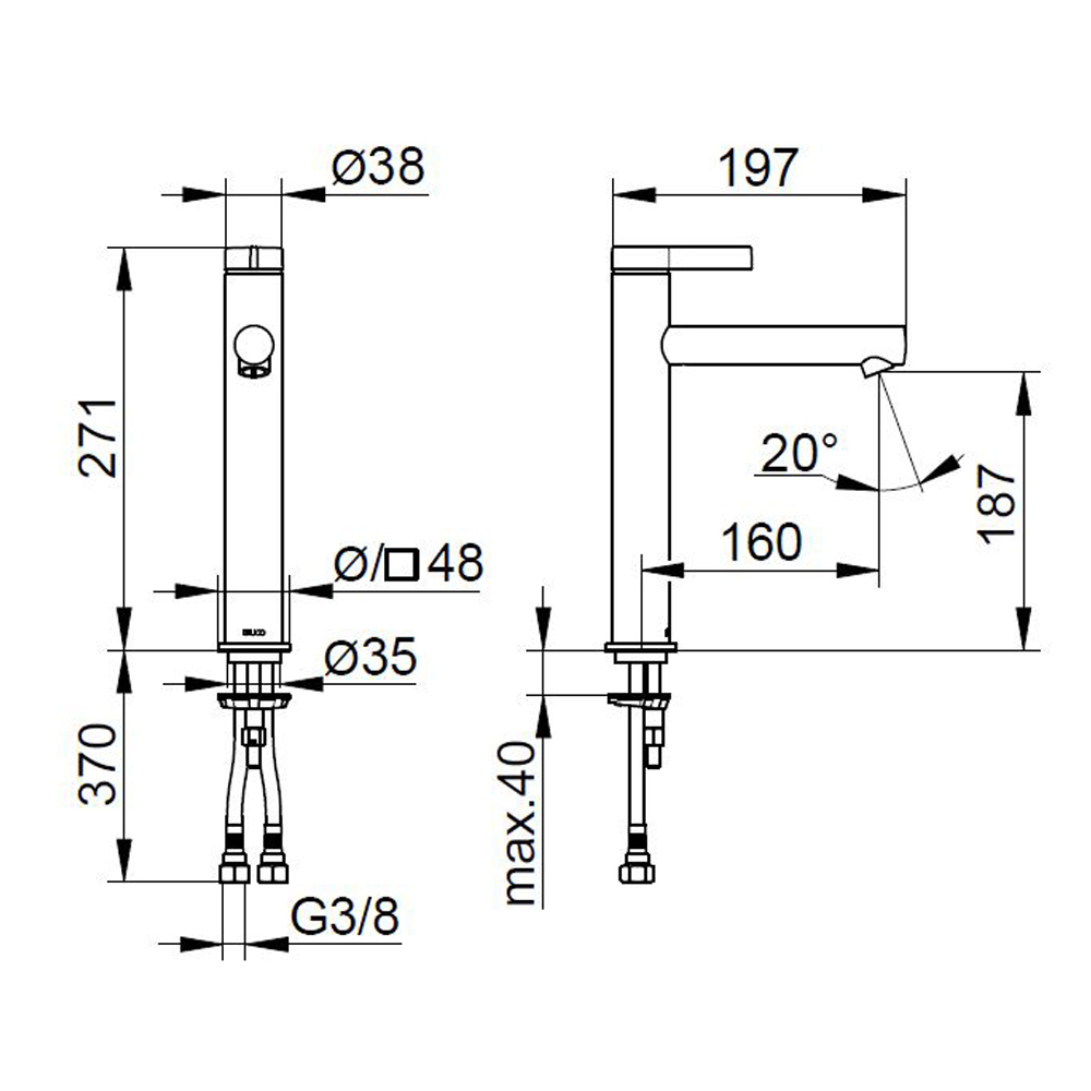 - luftare M 20x1, tryckrör 570 mm, G 3/8 tum;