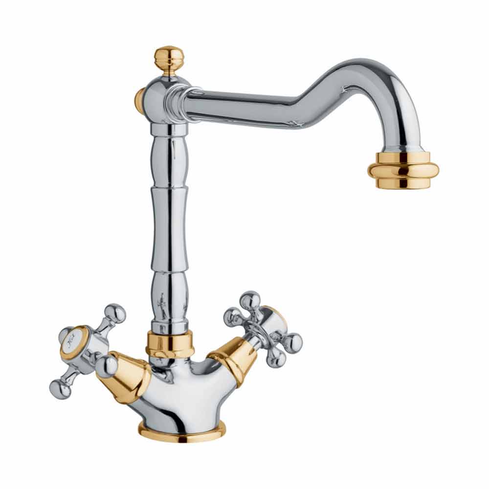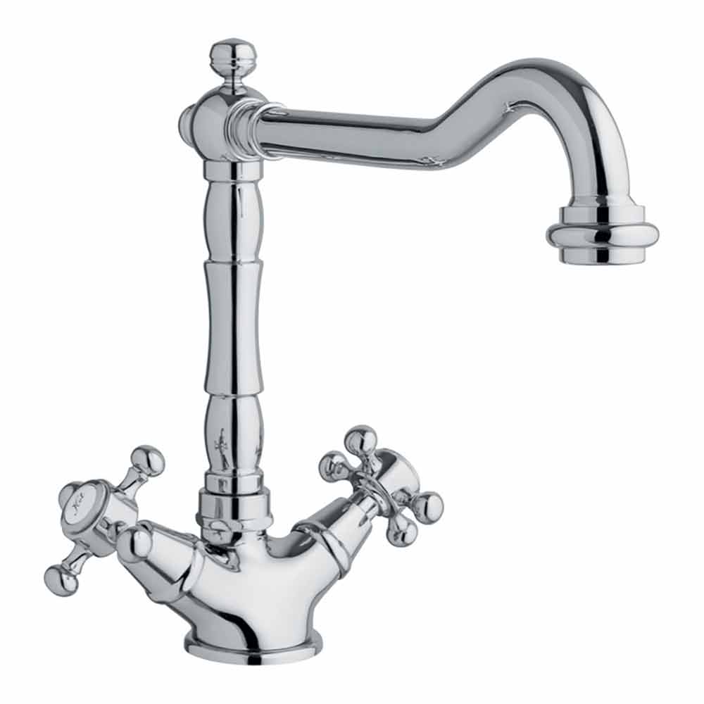Enhålsblandare för diskbänk i mässing, klassisk design Tillverkad i Italien.