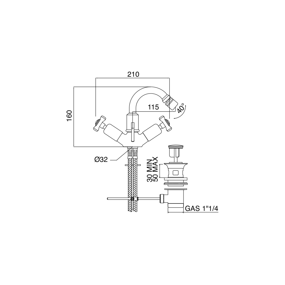 Tung mässing bidé monofon med avlopp Tillverkad i Italien