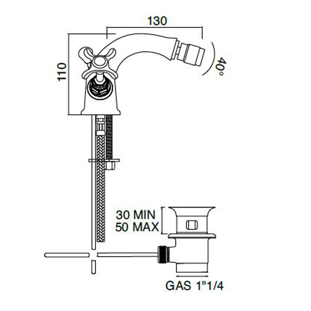 Bidéblandare med ett hål i klassisk stil tillverkad av handgjord mässing tillverkad i Italien.