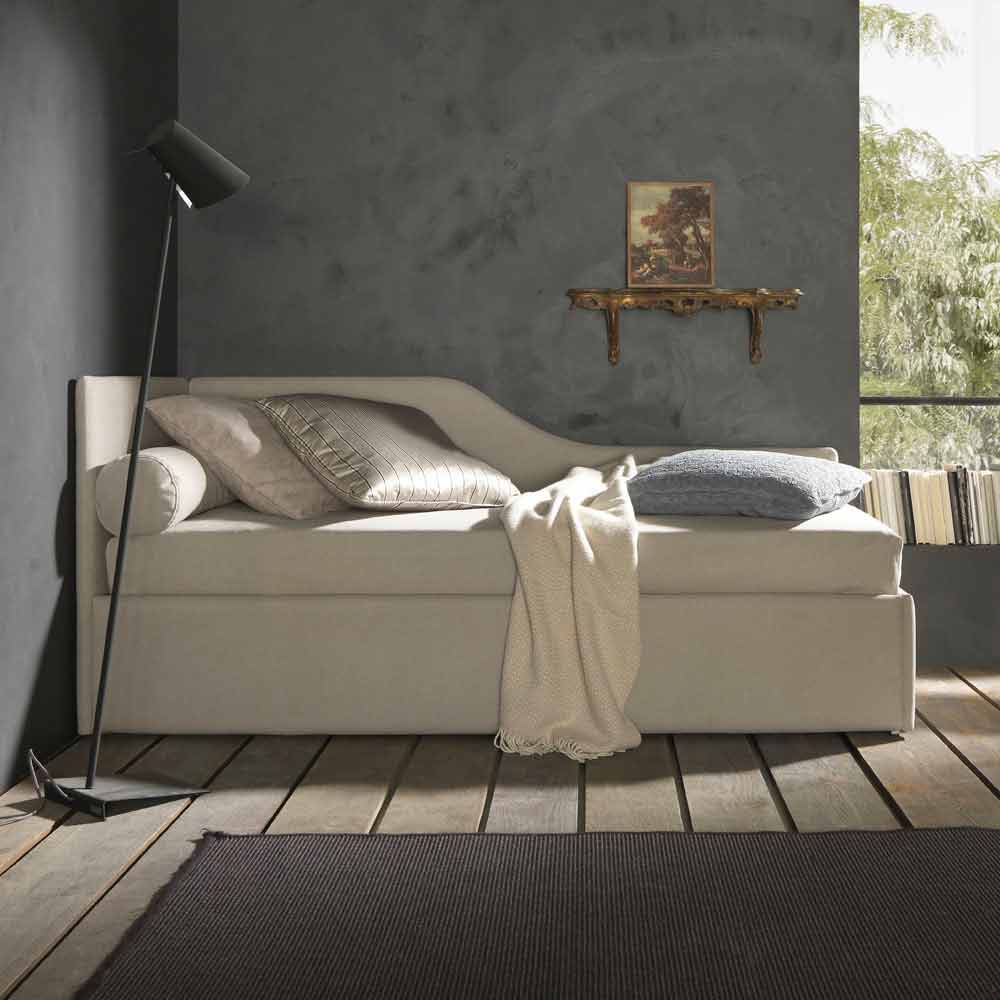 Enkelsäng med formad sänggavel, Line 8 av Bolzan, tillverkad i Italien