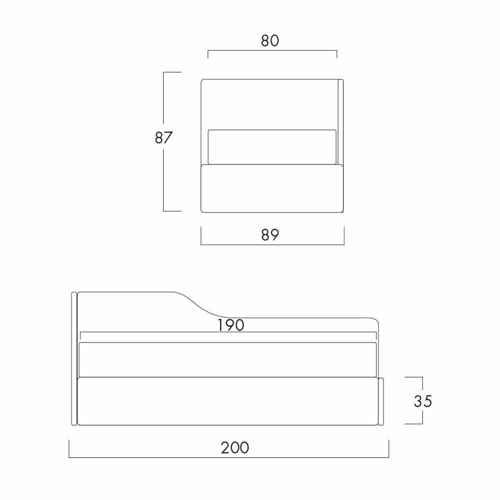 - 80x190 cm (färdiga mått L 91 x D 200 x H 87 cm)