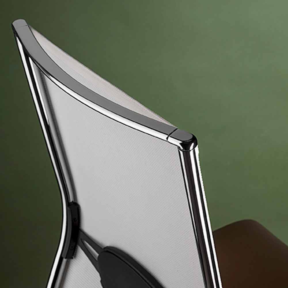 svängbar stålkonstruktion och med hjul med glänsande kromfinish, ger ryggstödets elastiska nät och det innovativa systemet med skyddade fjädrar inuti sätet en symbios av