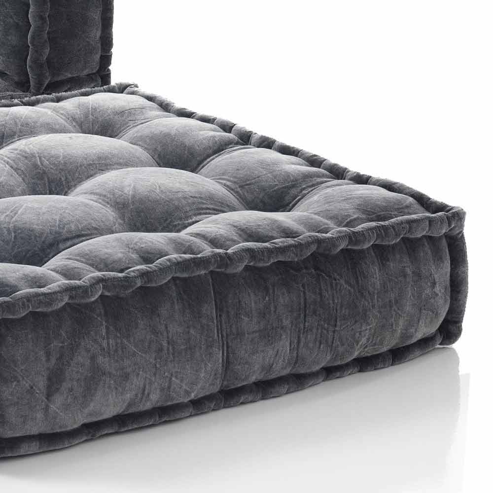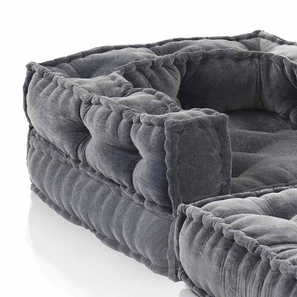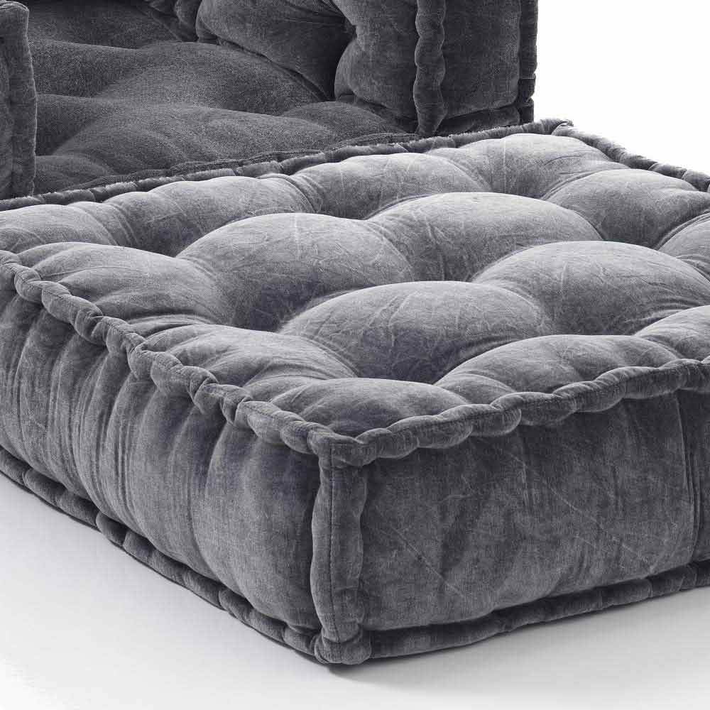 Etnisk lounge schäslong fåtölj i grå eller blå och vit sammet.