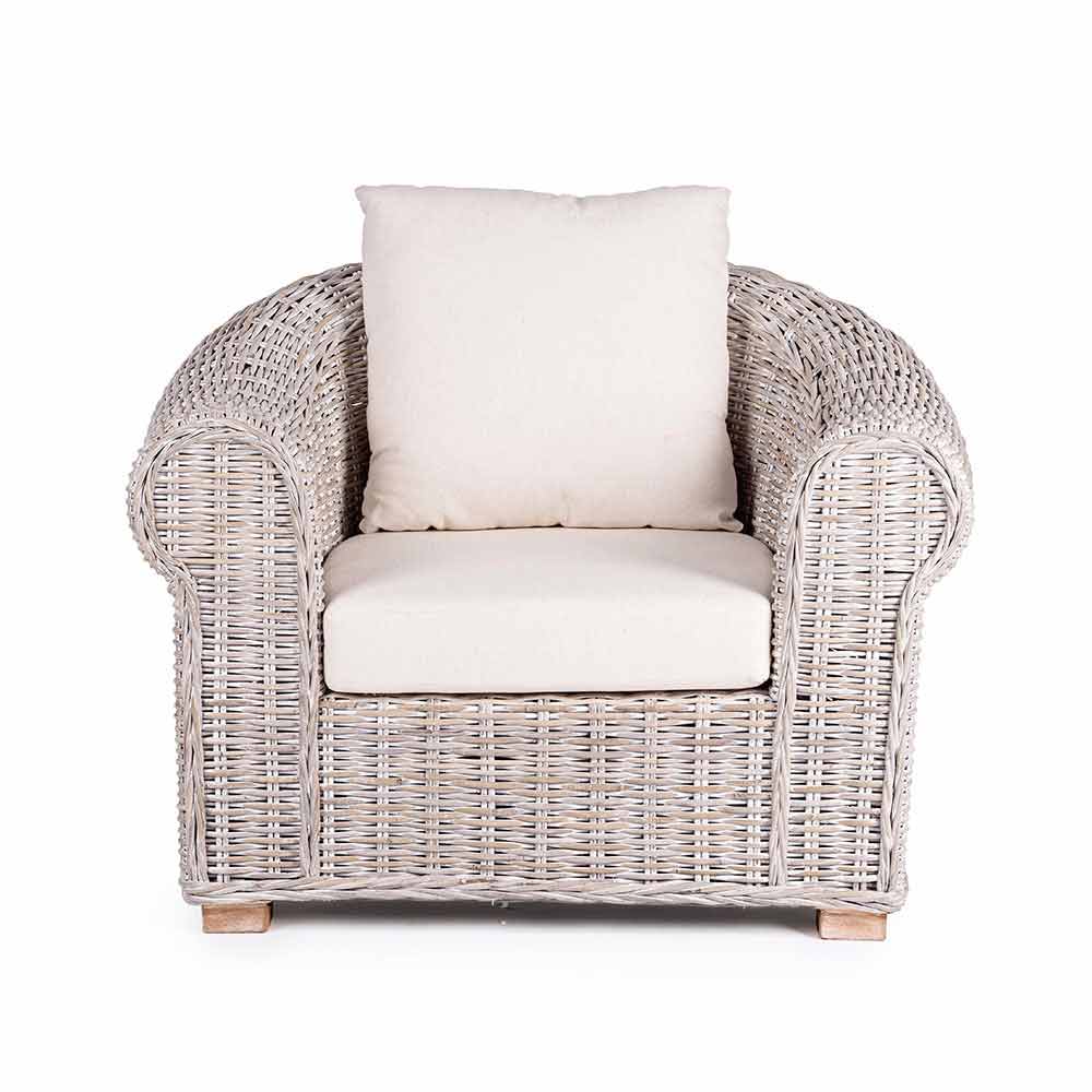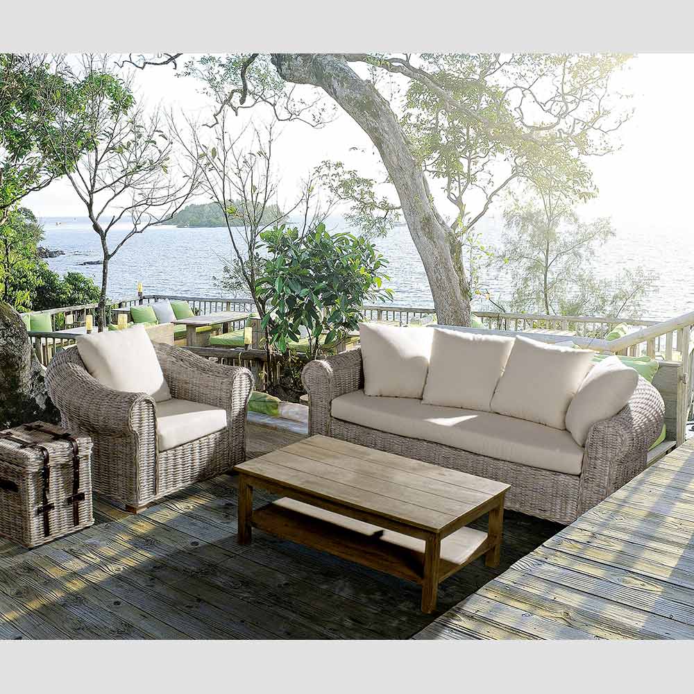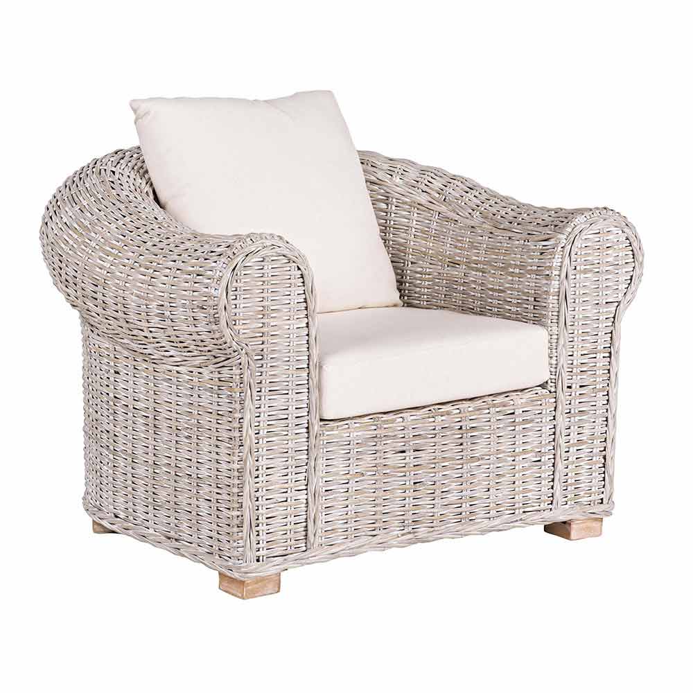 Utomhusfåtölj i naturrotting med dynor ingår - Keira
