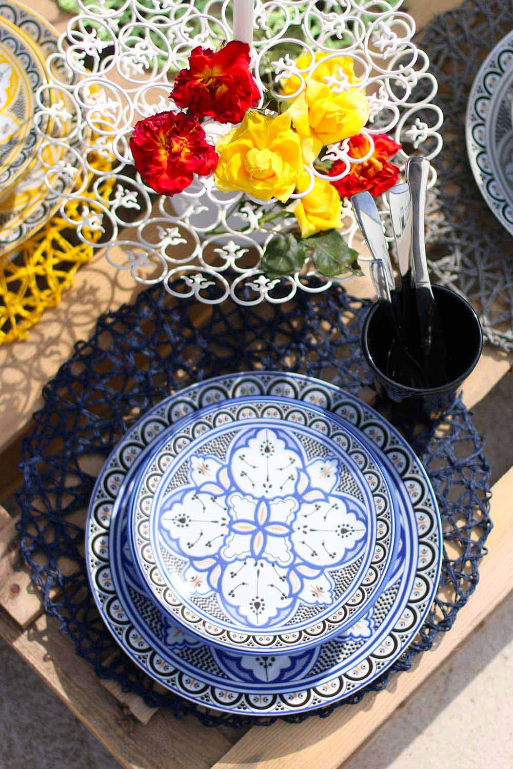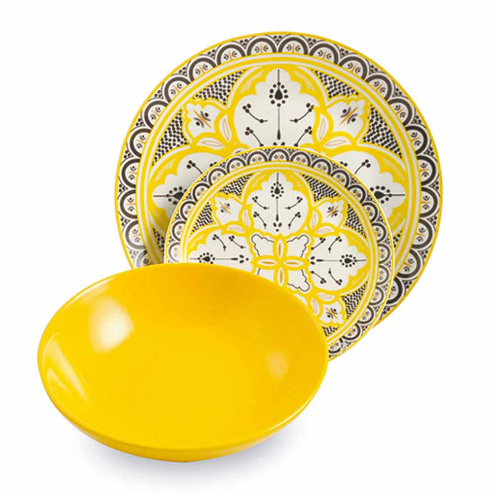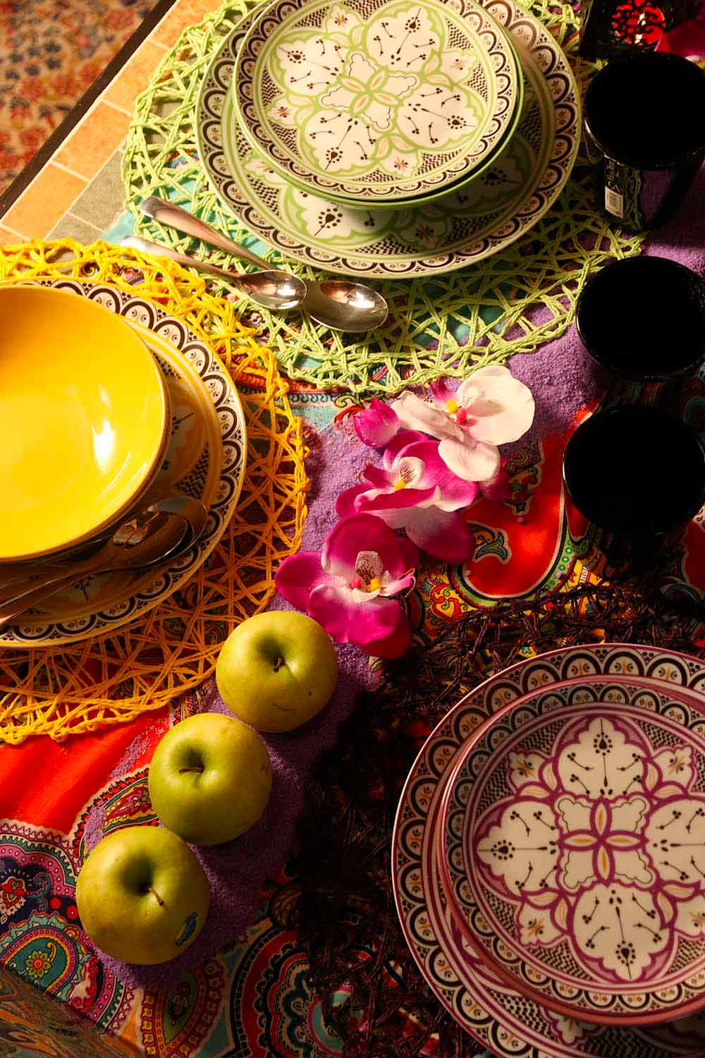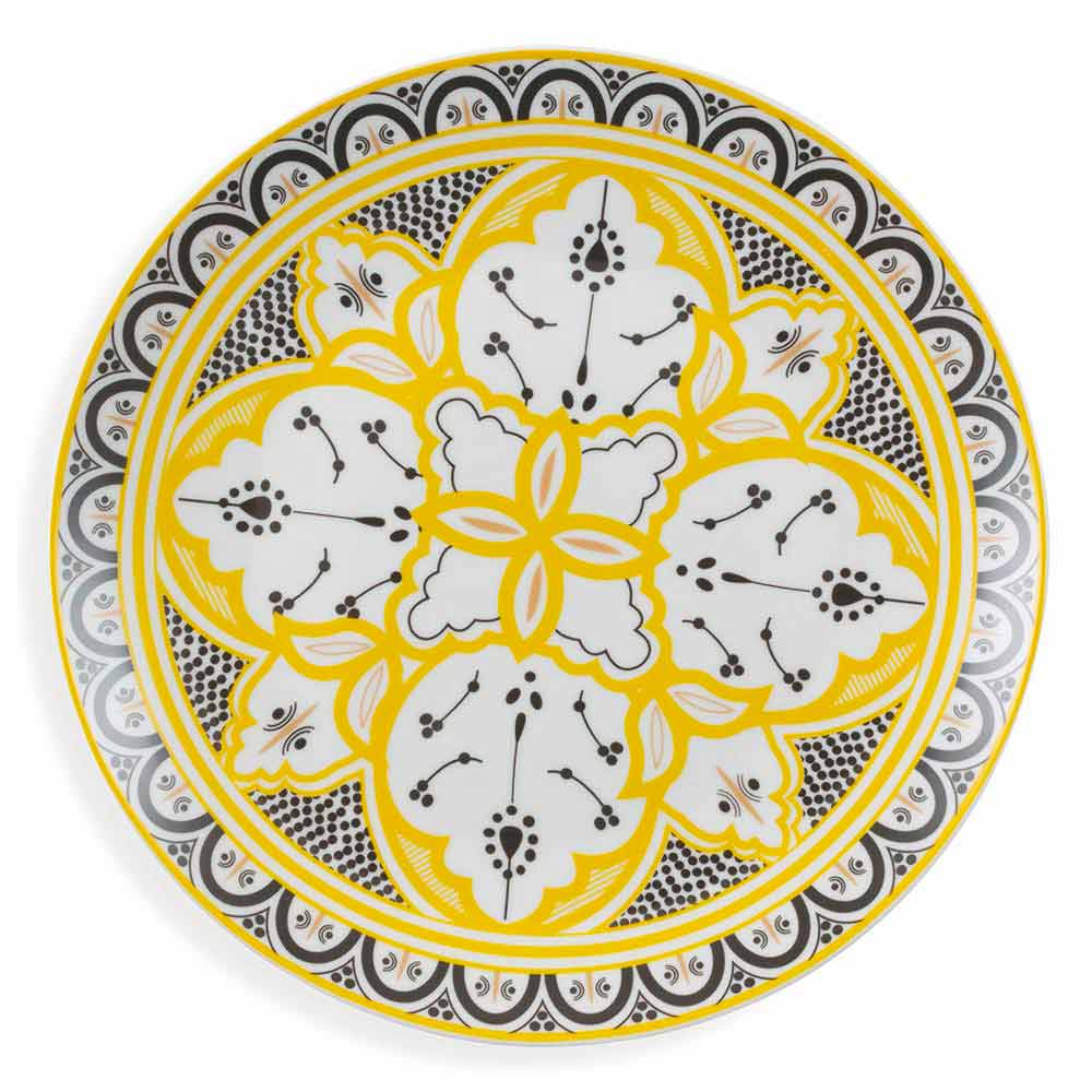 Marocko . I mitten av varje maträtt är faktiskt den stora och geometriska arabesk som används istället för flora och fauna vars representation var förbjuden av platsens heliga lagar.