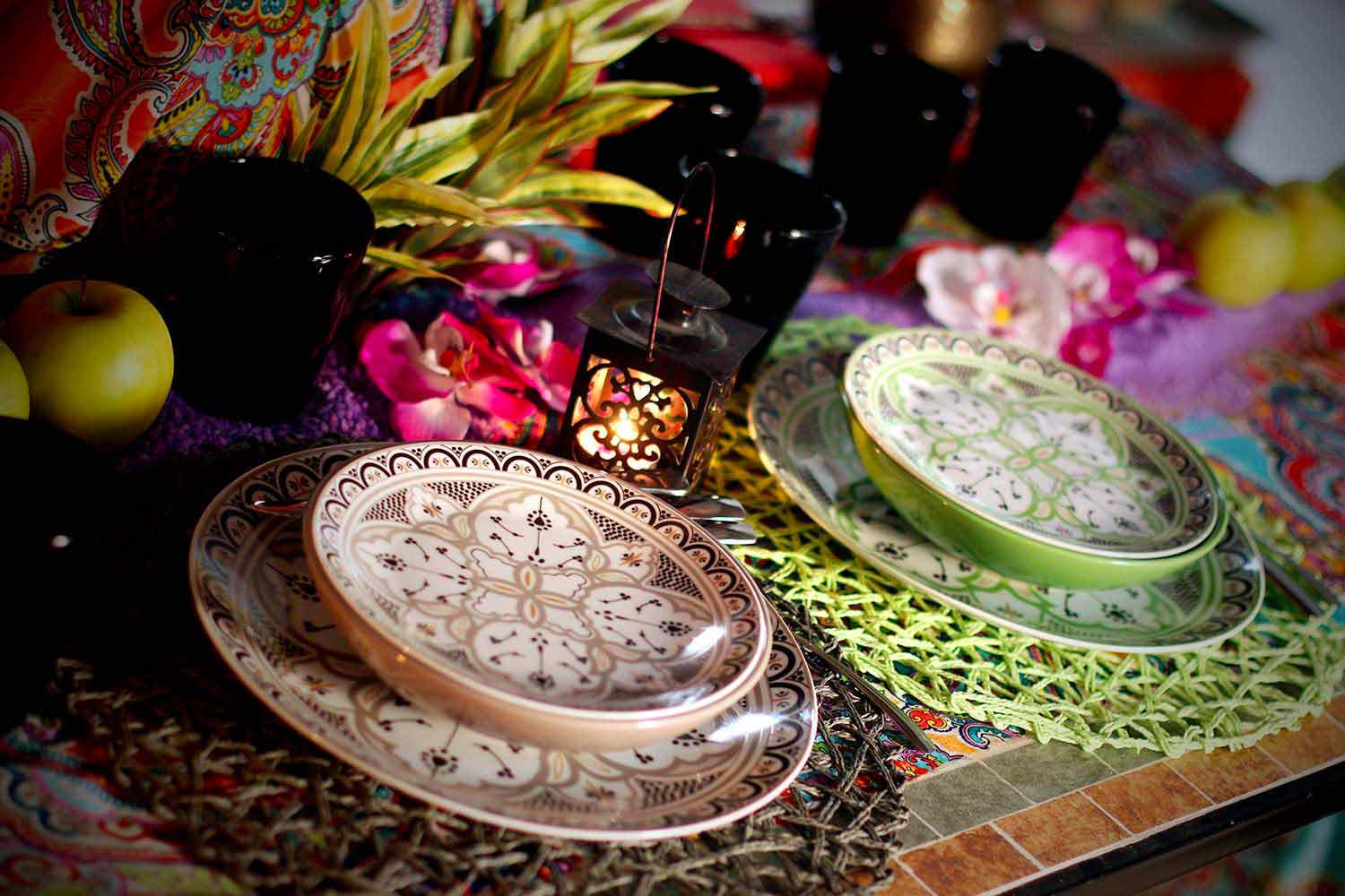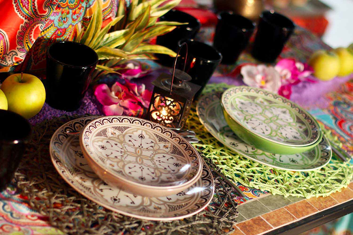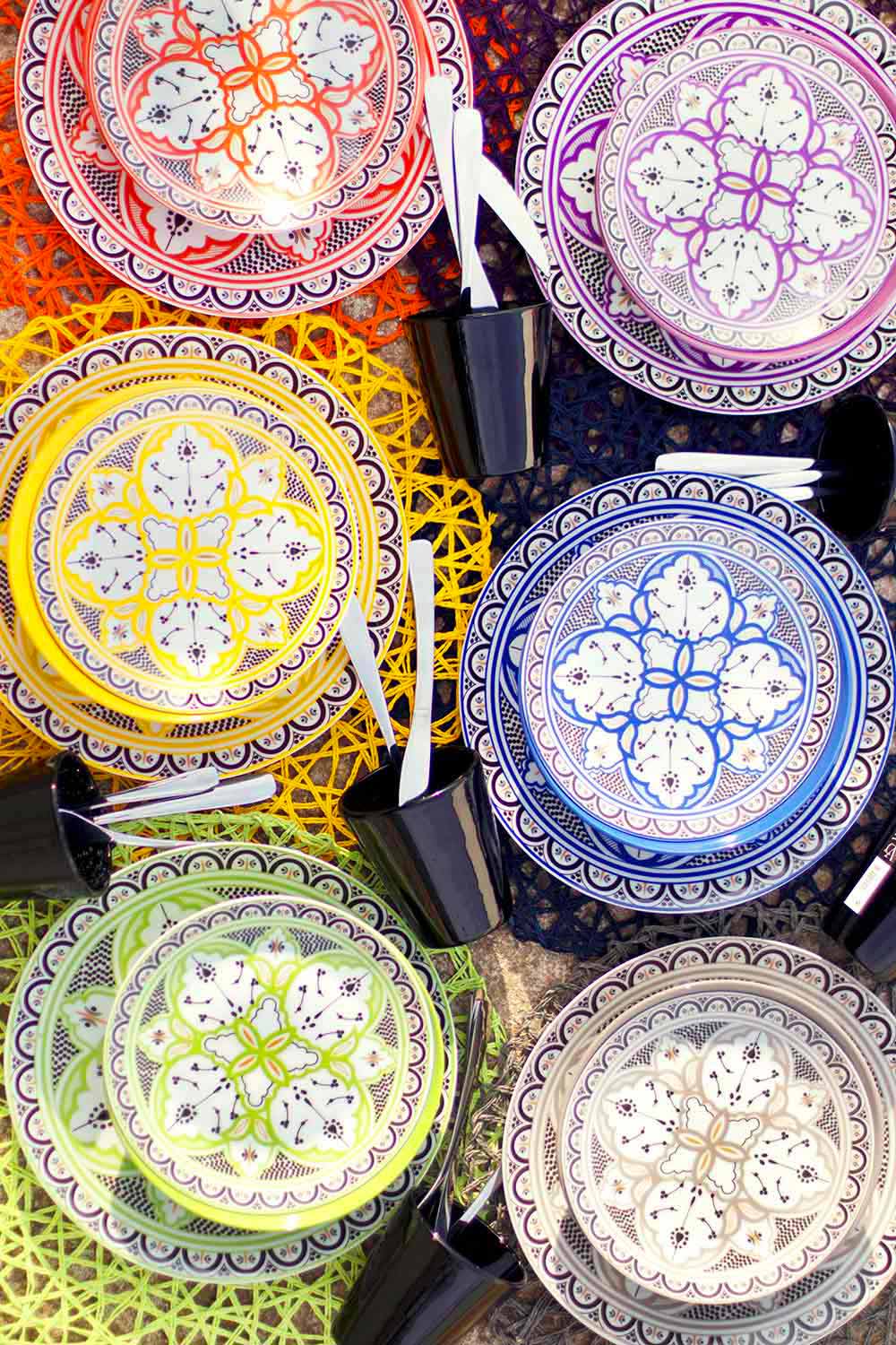 Stilen i detta kit, i perfekt harmoni mellan den orientaliska och latinamerikanska och moriska kulturen, är en tydlig hänvisning till historien om den berömda och eleganta marockanska keramiken med geometriska och raffinerade mönster, vilket tillskriver varje gäst en färg som skiljer sig från den för alla andra, för att symbolisera filosofin att alla deltar i