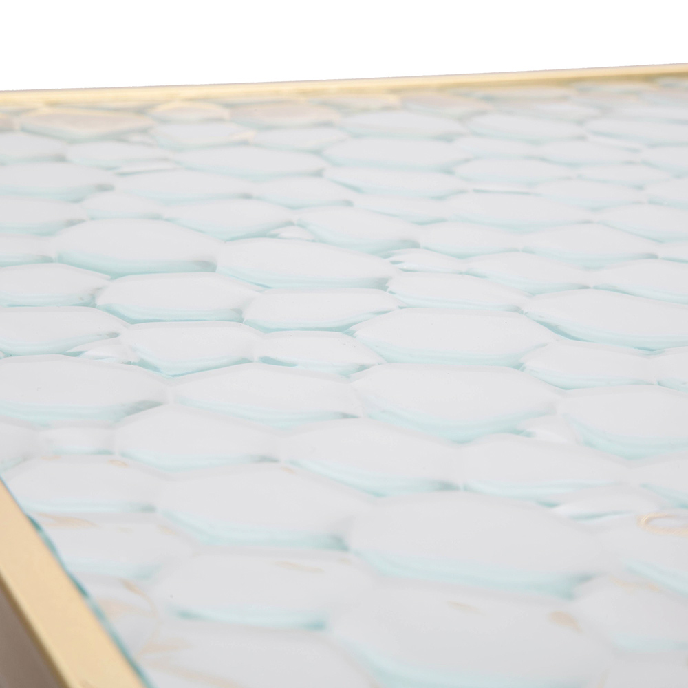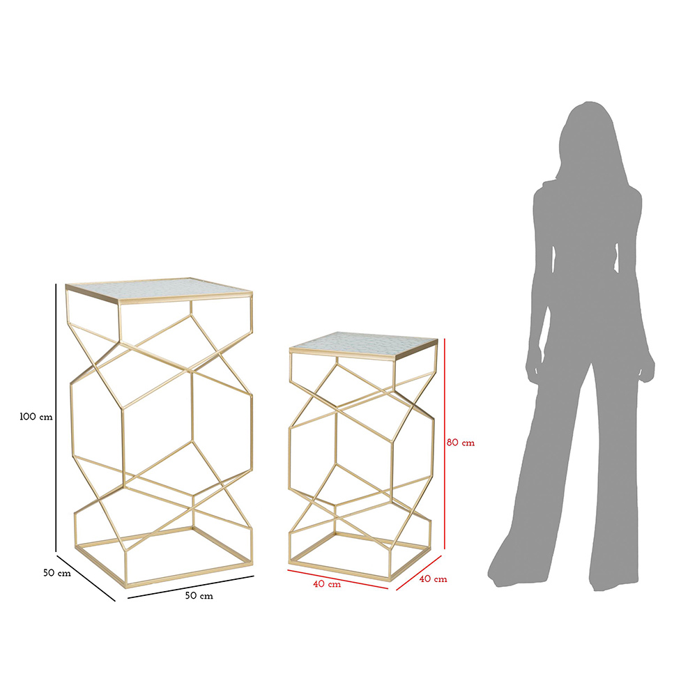 Ovanför detta eleganta nätverk erbjuder stödytorna en slät och lysande yta, vilket skapar en fascinerande kontrast till den luftiga och öppna strukturen. Oavsett om de används tillsammans för att skapa en koordinerad komposition eller placeras separat som individuella fokuspunkter , lyfter dessa sidobord estetiken i vilket utrymme som helst.