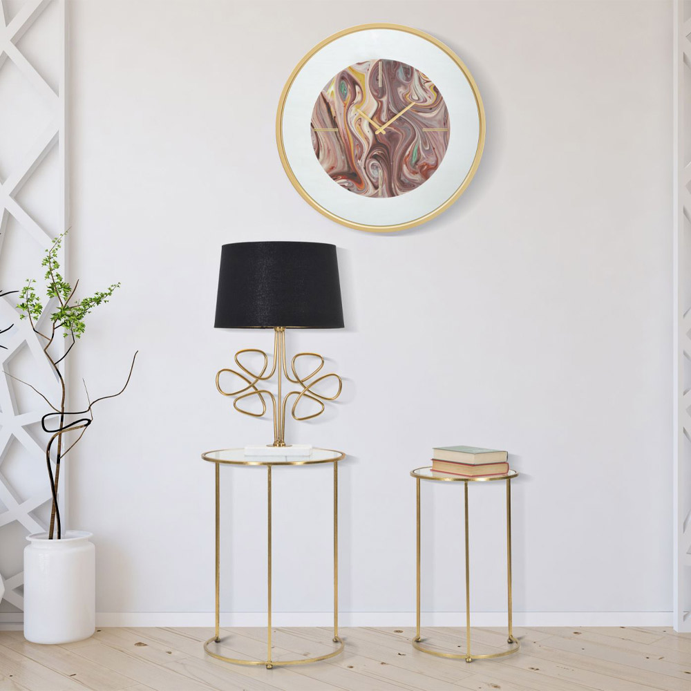 Runda soffbord med järnstruktur i gyllene yta och