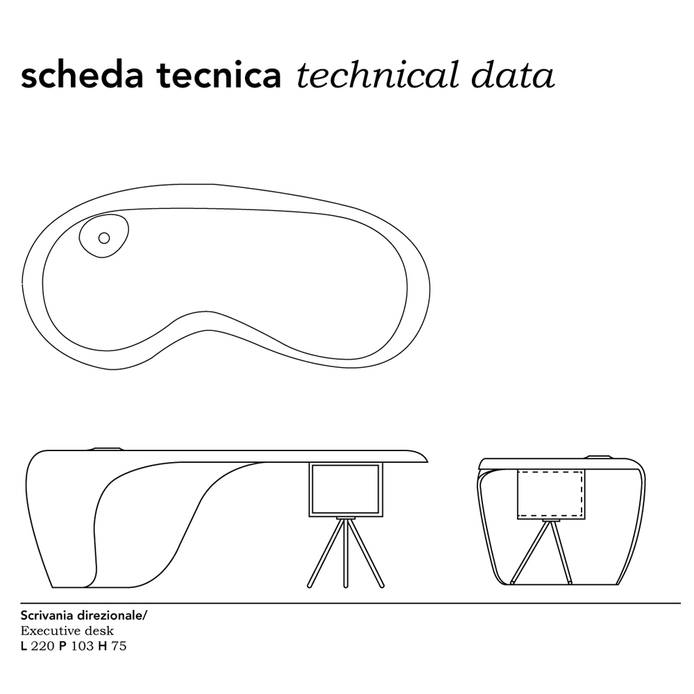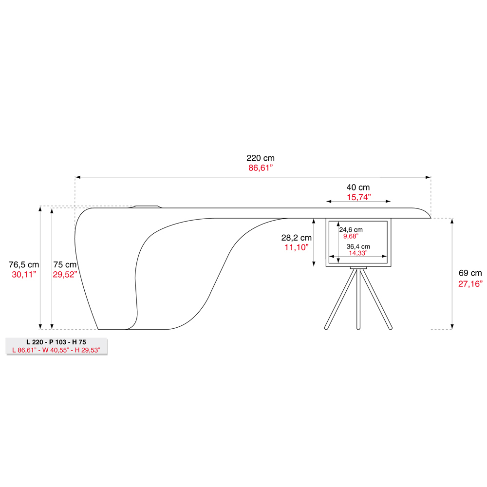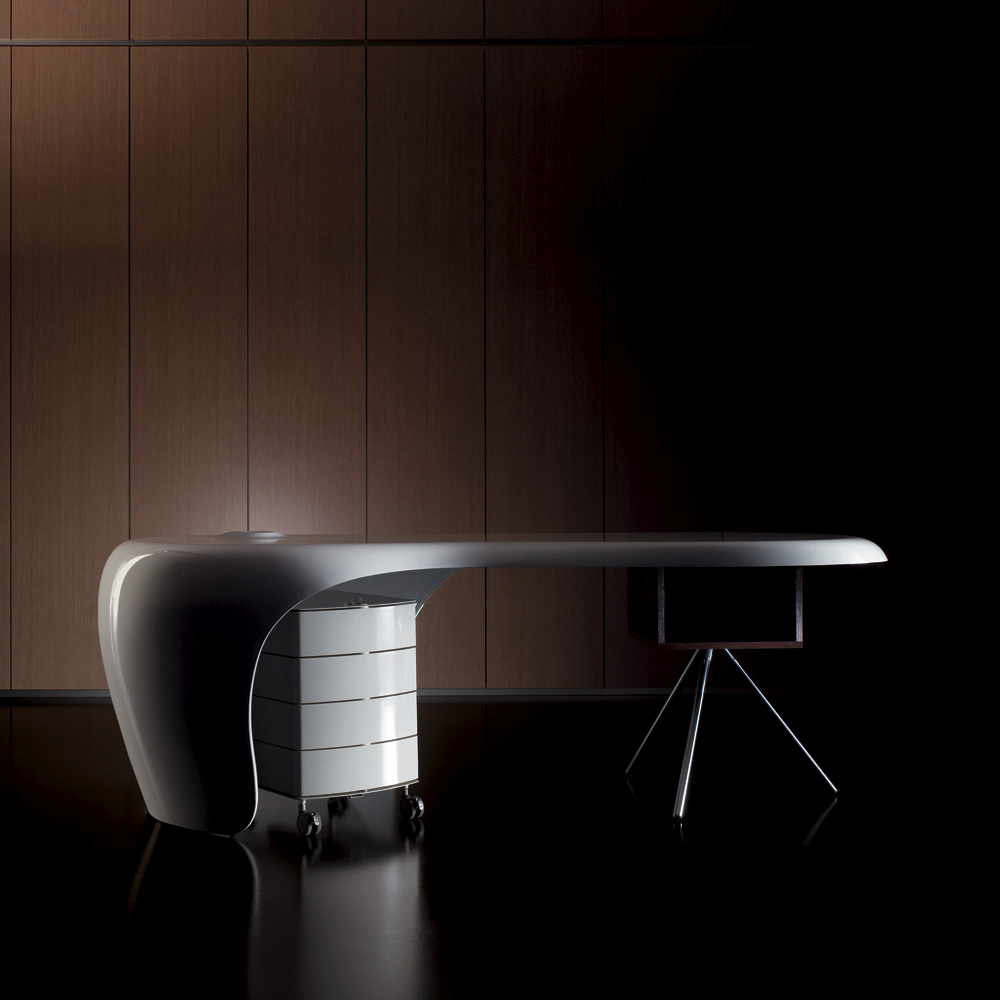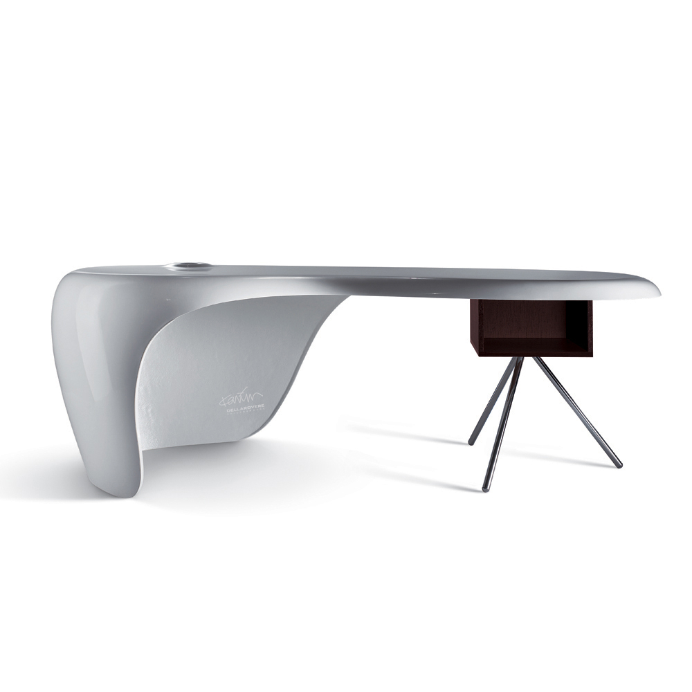 Detta skrivbord är uppbyggt av en självbärande formgjuten kropp i högdensitetspolyuretan, tillgänglig i tre olika varianter: Glossy, Embossed Matt eller i metallic-versionen. När du har valt finish på skrivbordet kan du även välja den färgvariant som passar dig bäst.