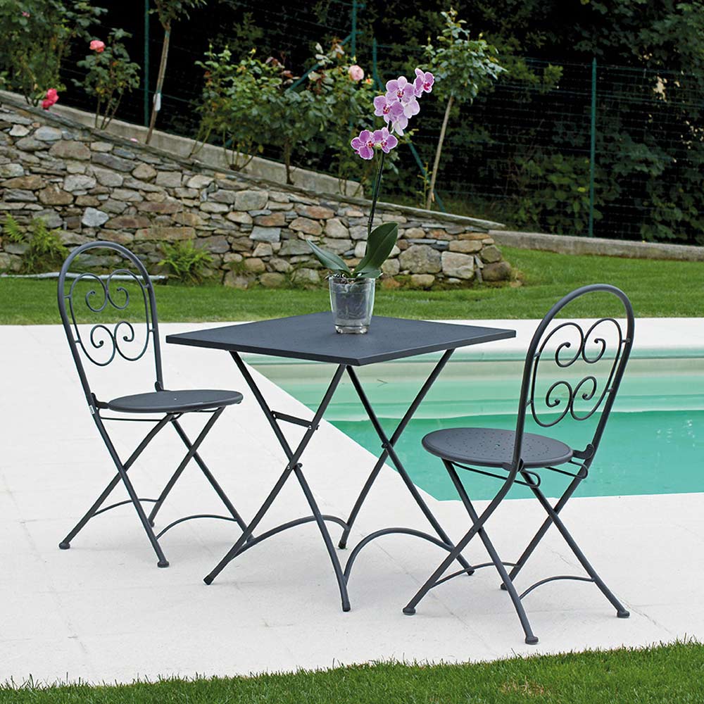 Fällbart trädgårdsbord med skiva och underrede av järn med antracitgrå finish . En möbel som kännetecknas av en enkel och funktionell estetik med fyrkantig form. Denna aspekt gör den till en idealisk inredningslösning för dem som älskar att tillbringa sin fritid utomhus och inte vill ge upp en touch av exklusiv och originell stil .
