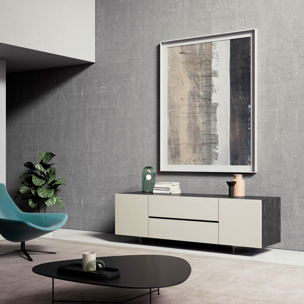 Fanerad skänk med ben av metakrylat Tillverkad i Italien.