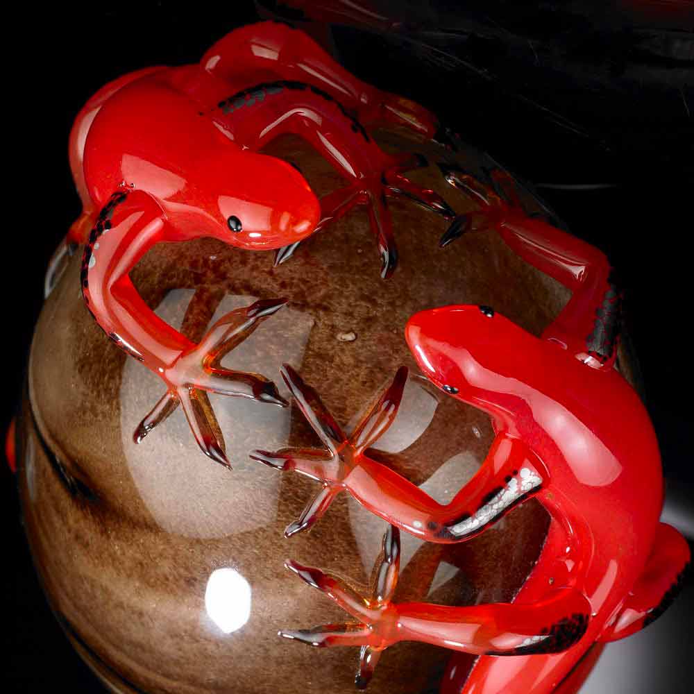 Dekorativ äggformad glasstaty med 2 gecko Tillverkad i Italien, fin.