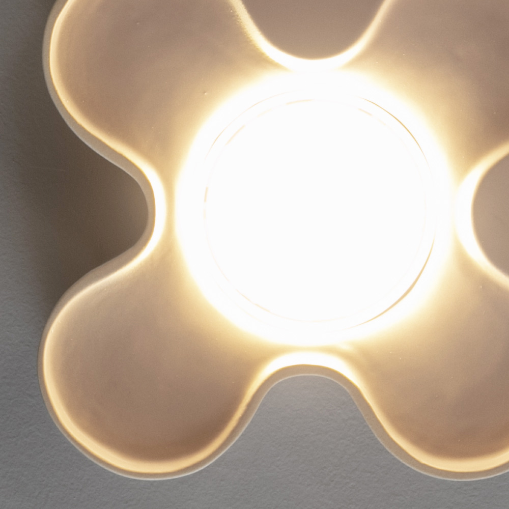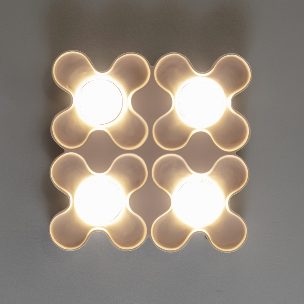 Vit keramisk taklampa med färgad interiör och aluminiumkomponenter tillverkad i Italien genom en
