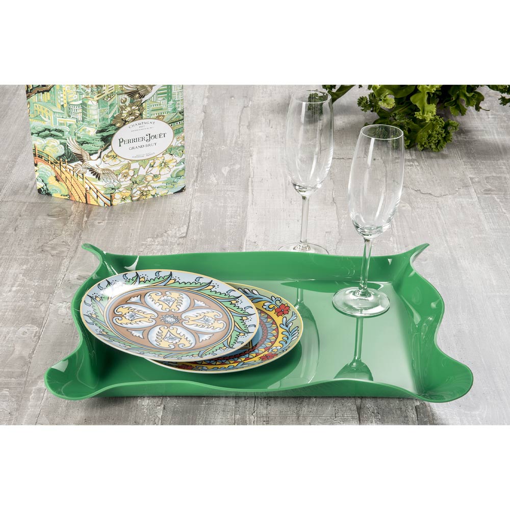 Handdraperad färgad plexiglasbricka, 2 storlekar och 2 stycken tillverkade i Italien.
