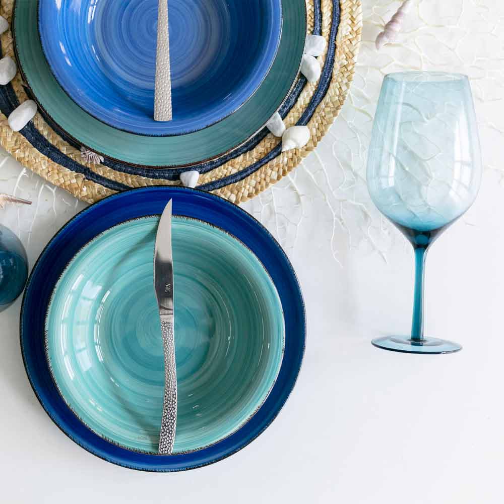 blå nyanser tar oss till nyanser av vattengrönt, möter den behagliga neutraliteten i vitt och skapar en tidlös,