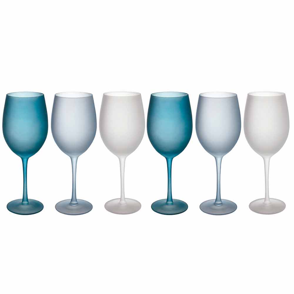 Uppsättning färgade vinglas i frostat glas, 12 st.