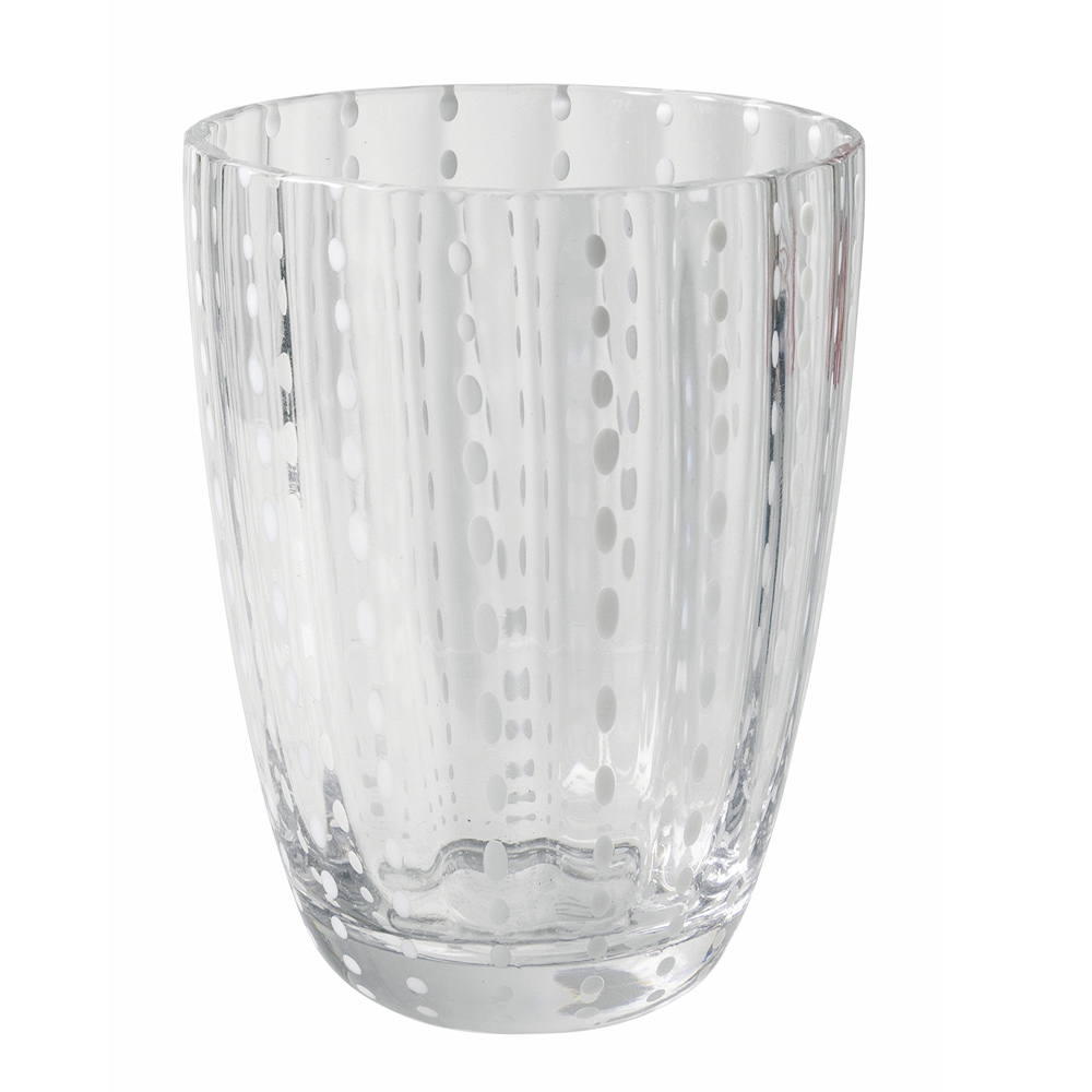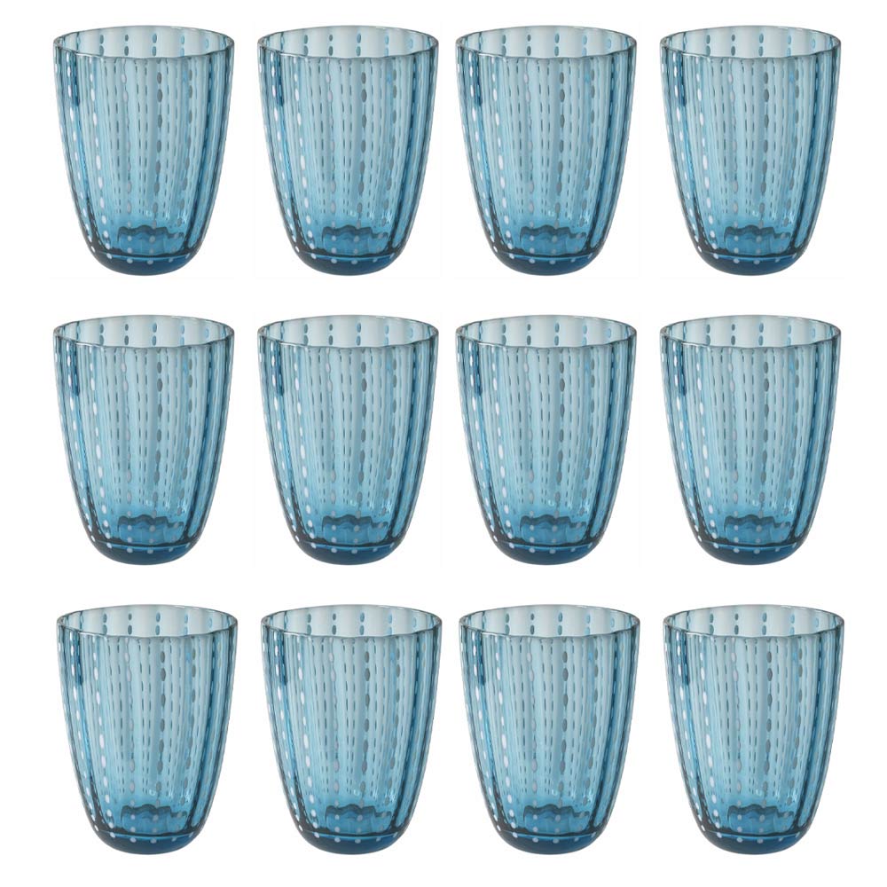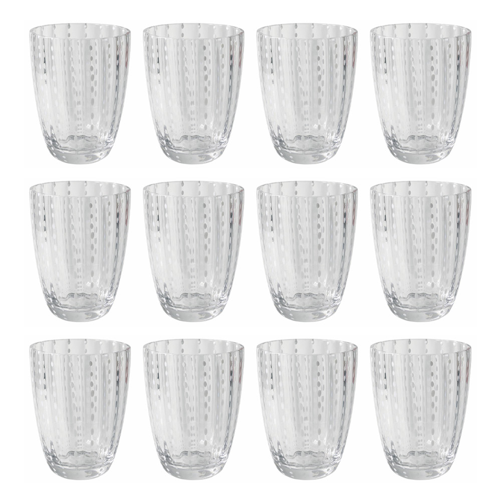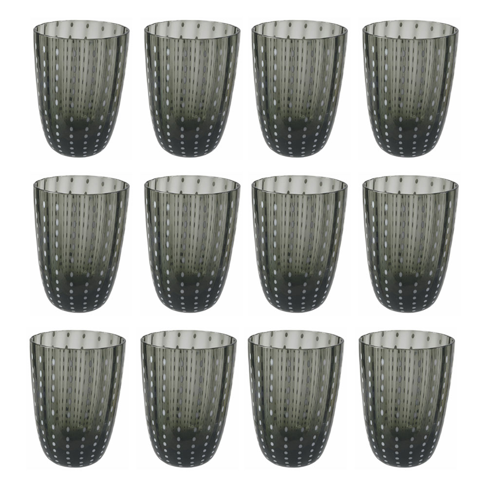 Glas för vatten i färgat glas med vita dekorationer 12 st.